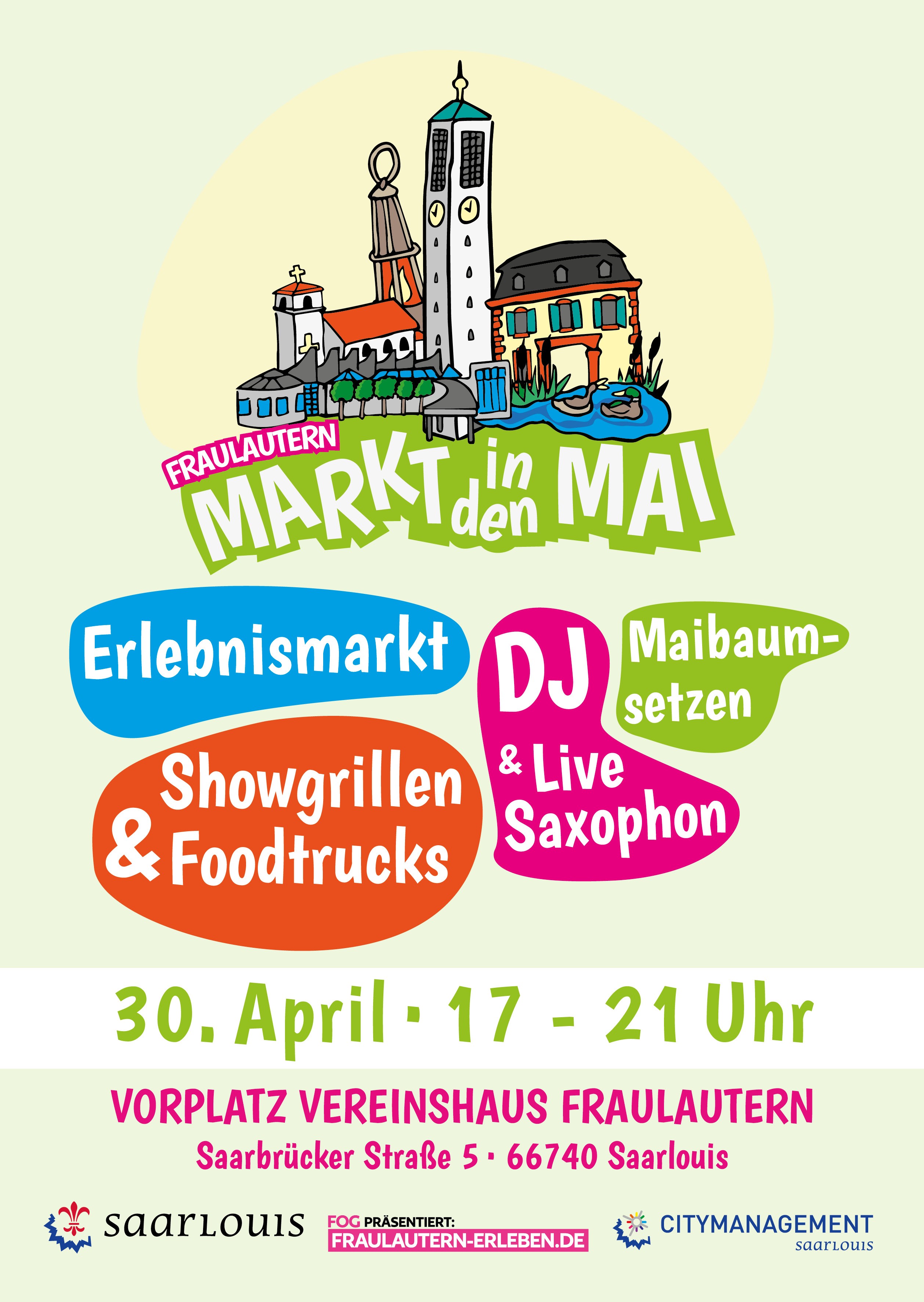 Am Mittwoch, den 30. April 2025, lädt die Europastadt Saarlouis herzlich zum 1. "Markt in den Mai" ein. Von 17 bis 21 Uhr verwandelt sich der Vorplatz des Vereinshauses Fraulautern (Saarbrücker Straße 5, 66740 Saarlouis) in einen bunten Erlebnismarkt für Groß und Klein.