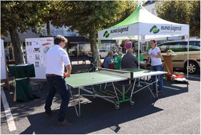 Am 19. September, dem Parking Day, informierte die AG über Hitze- und Starkregengefahren in Saarlouis. Der Parking Day ist ein seit 2005 international jährlich begangener Aktionstag. An dem Tag werden Parkplätze im öffentlichen Straßenraum modellhaft kurzfristig umgewidmet und einer anderen Nutzung zugeführt: z.B. als Begegnungs- oder Ruheplatz mit Sitzflächen, als Kinderspielplatz, als Fahrradabstellfläche. Zusammen mit dem BUND Saarlouis wurden 5 Parkplätze auf dem Großen Markt als Sitz-, Informations- und Tischtennisspielfläche genutzt.