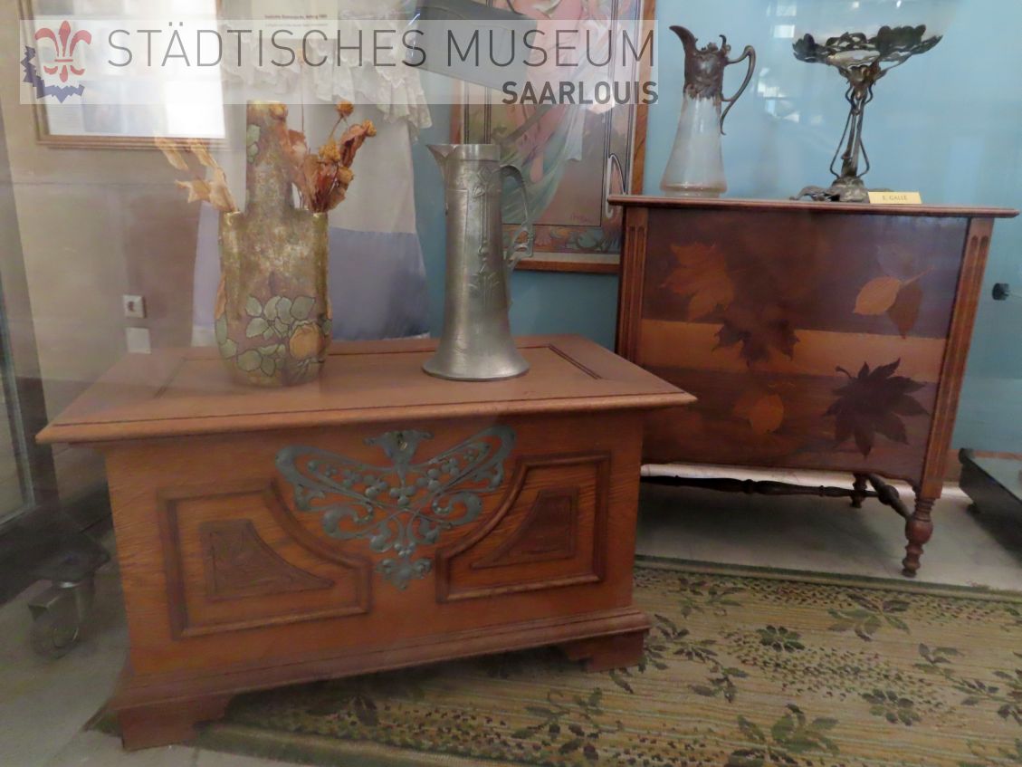 Heute ein Blick in die Jugendstil-Ausstellung. Der Jugendstil ist die kunstgeschichtliche und architektonische Epoche an der Wende vom 19. zum 20. Jahrhundert. Die zu dieser Zeit, nach der Niederlegung der Festungsanlagen, neu entstehenden Stadtviertel der südwestlichen Innenstadt, sind geprägt durch Jugendstil-Gebäude, -Einrichtungsgegenstände und -Kunstwerke. Diese bedeutende Phase der Stadtgeschichte findet auch durch diese Ausstellung ihre Berücksichtigung im Museum.