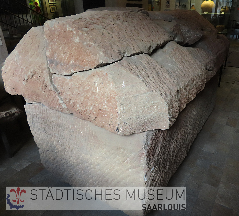 Die „Römer“ haben auch im heutigen Saarlouiser Stadtgebiet ihre Spuren hinterlassen. Hierzu zählt auch dieser knapp 2 ½ Tonnen schwere Steinsarg der im Jahr 1922 im Stadtteil Roden gefunden wurde. Er ist aus Felsberger Sandstein gehauen und misst in etwa 230x120x130 cm. Der mächtige Sarg enthielt auch verschiedene Grabbeigaben und trägt die Inschrift „M. VRSVLA“. Wann aber die Dame namens „Ursula“ in etwa bestattet wurde, konnten bisher nicht verlässlich datiert werden.