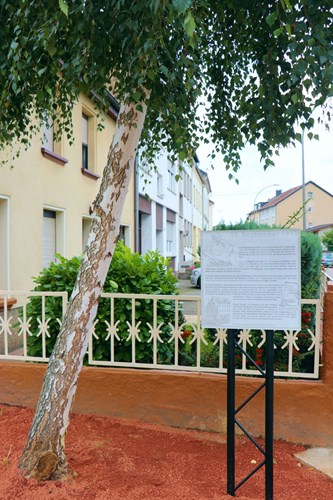 Eine Informationstafel erinnert in unmittelbarer Nähe zum Tatort in Fraulautern an den heimtückischen Brandanschlag vom 19. September 1991, bei dem Samuel Yeboah gewaltsam zu Tode kam.