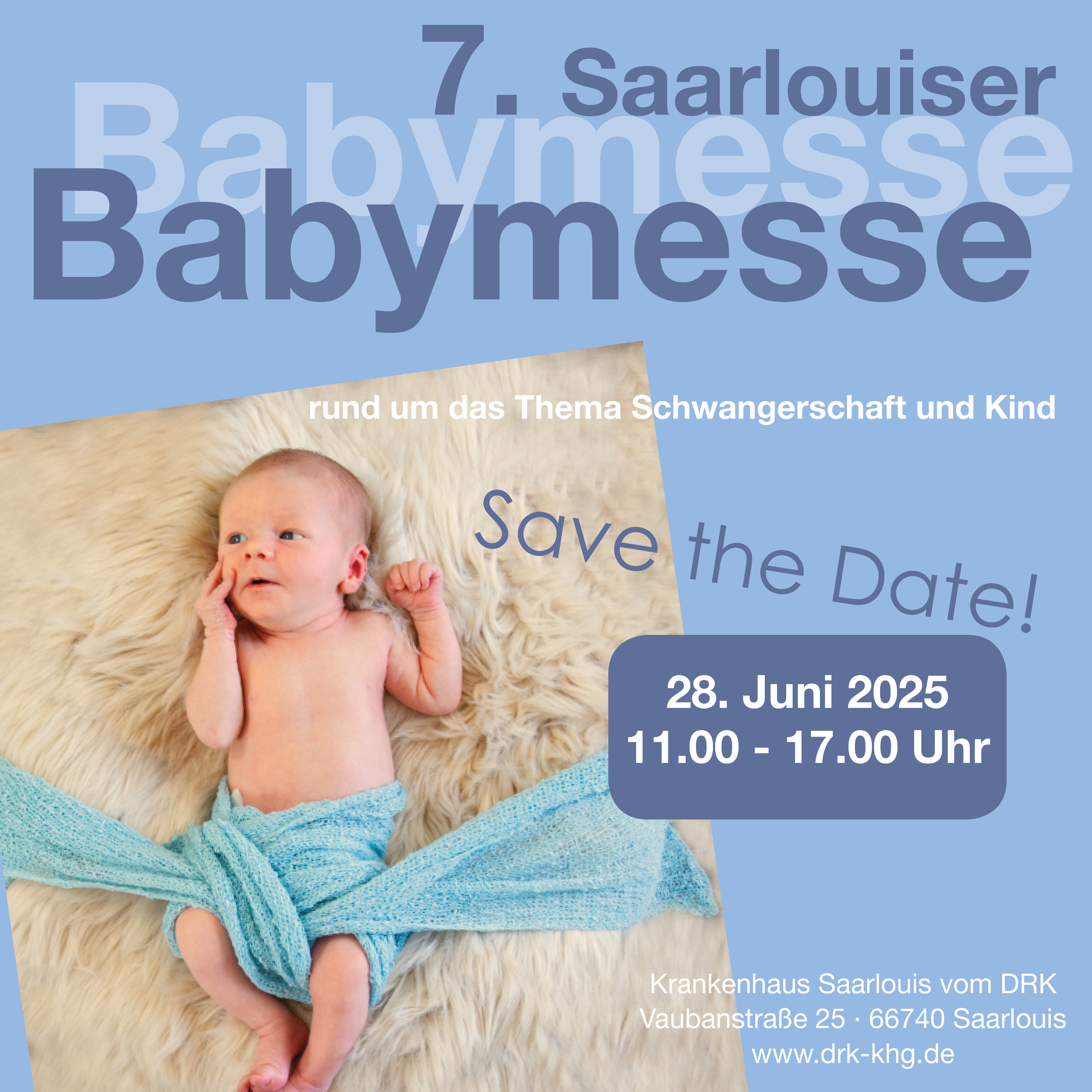 Die Babymesse am Krankenhaus Saarlouis vom DRK wird in diesem Jahr bereits zum 7. Mal stattfinden. An diesem schönen Tag werden zahlreiche Aussteller zu den Themen Baby, Kind und Familie unsere Gäste empfangen. Ein buntes Rahmenprogramm mit Vorträgen unserer Fachabteilungen Geburtshilfe und Anästhesie, musikalischer Unterhaltung durch das Jugendorchester des Musikvereins Wallerfangen und Ballonmodellage von Manfredo Vondasaar wird das Fest abrunden. Dazu gibt es Speisen und Getränke zu familienfreundlichen Preisen. Für werdende Eltern, junge Familien und Interessierte bietet das Fest die ideale Gelegenheit, mit unseren Hebammen ins Gespräch zu kommen, sich über Kurse und Hilfen zu informieren und Accessoires sowie Babyprodukte zu erwerben. Der Eintritt ist frei! Seien Sie unsere Gästen zwischen 11 und 17 Uhr. Mehr Infos und das Programm finden Sie auf unserer Webseite: https://www.drk-khg.de/veranstaltungen/veranstaltung-detail/7-saarlouiser-babymesse