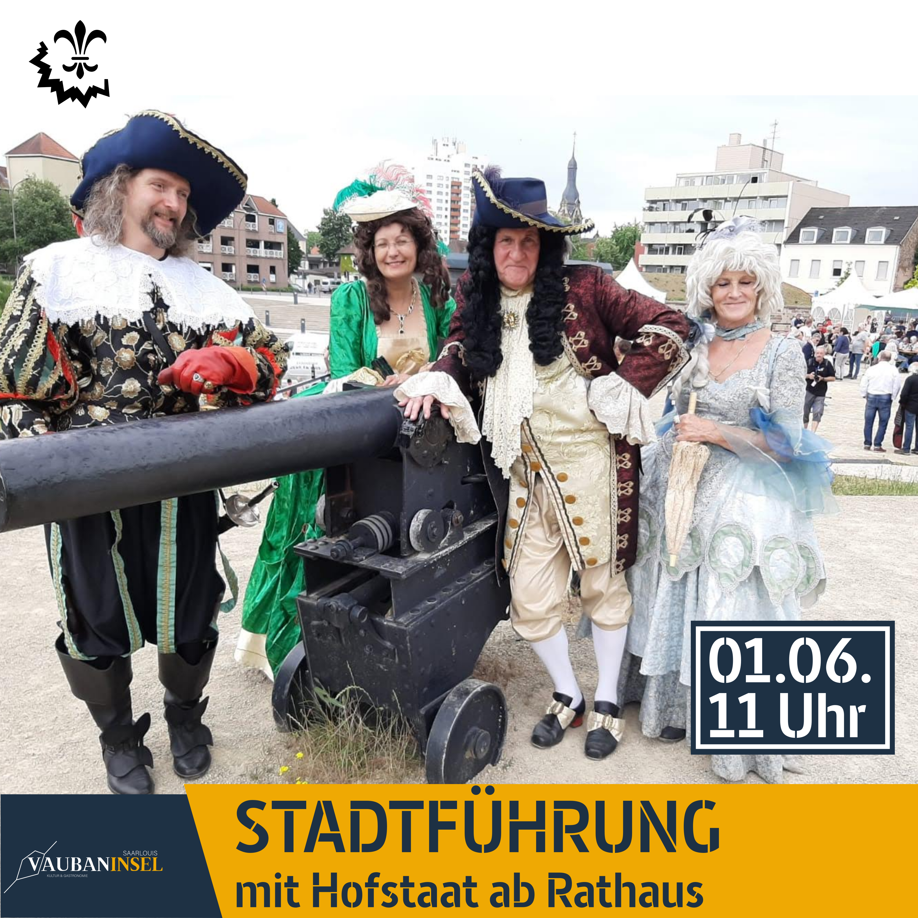 In diesem Jahr feiert die BAROCCO-ROYAL-COMPANY-SAARLOUIS (unter der Leitung von Norbert Güthler-Tyarks zu Zissenhausen) ihr 20-jähriges Bestehen. Viele Stadtführungen, Theaterabende (z.B. 300 Jahre Vauban), Barocke Festspiele und grenzüberschreitende Veranstaltungen (Longwy, Pange in Frankreich) sowie in den Partnerstädten hat die Companie aufzuweisen. Sie ist und versteht sich als einer der kulturellen Botschafter der Kreisstadt Saarlouis und lässt Stadtgeschichte lebendig werden. Aus diesem Anlass wird in Zusammenarbeit mit dem Kulturamt der Kreisstadt Saarlouis am 31.05. und 01.06. eine Barockwochenende stattfinden. Am Sonntag, den 01.06. ab 11.00 Uhr findet eine Stadtführung mit König und Hofstaat ab dem Rathaus Saarlouis statt.