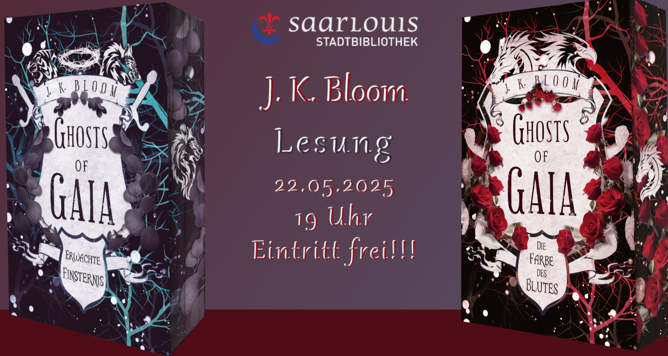 Die Stadtbibliothek Saarlouis lädt zu einem Fantasy-Abenteuer mit J. K. Bloom und ihren „Ghost of Gaia“ Romanen ein. Die junge Autorin stellt ihre „Ghost of Gaia“ Reihe am Donnerstag, 22. Mai 2025 um 19 Uhr in der Stadtbibliothek Saarlouis vor. J.K. Bloom schreibt seit ihrem elften Lebensjahr. Für die „Fürsten der Dämonen“, eine ihrer ersten Fantasy-Reihen gewann sie den LYX Storyboard Wettbewerb. 2020 erhielt sie mit ihrem Buch „Die Drachenhexe 1 - Licht und Schatten“ einen Literaturpreis beim Skoutz Award in der Kategorie Fantasy. Das Erschaffen neuer Welten ist ihre Leidenschaft. Diese Leidenschaft zeigt sich nicht nur in ihren mehrteiligen Romanen. Sie arbeitet auch als Grafikdesignerin, Hörbuchsprecherin und Illustratorin. Ihre Fans lieben ihre Illustrationen und selbst entworfenen und gezeichneten Karten verschiedenster Welten. J.K. Bloom wird bei der Lesung aus ihrer zweibändigen „Ghost of Gaia“ Reihe lesen. „Erwachte Finsternis“, der erste Band ist im Herbst 2024 erschienen, der Zweite „Die Farbe des Blutes“ im Februar dieses Jahres. In den Romanen geht es um Luxija, die als Geistheilige im Land der Natur aufwächst und Ayren, den Sohn des Feudalherrn, der nichts anderes als Eisen und Stahl kennt. Durch ein Abkommen ihrer beiden Herrscher wird Luxija zu Ayrens Leibwächterin. Neben der Gelegenheit, J.K. Bloom und ihr Werk kennenzulernen, bietet die Veranstaltung der Stadtbibliothek Saarlouis auch die Möglichkeit von einer jungen Autorin selbst zu hören, welche Erfahrungen sie in Zeiten von BookTok, Instagram und Social Media gemacht hat, und welche Freude sie dabei hat, ihre Phantasie in Worte zu gießen. Die Lesung findet am Donnerstag, dem 22. Mai 2025 um 19 Uhr in der Stadtbibliothek Saarlouis im Theater am Ring statt. Der Eintritt ist frei!