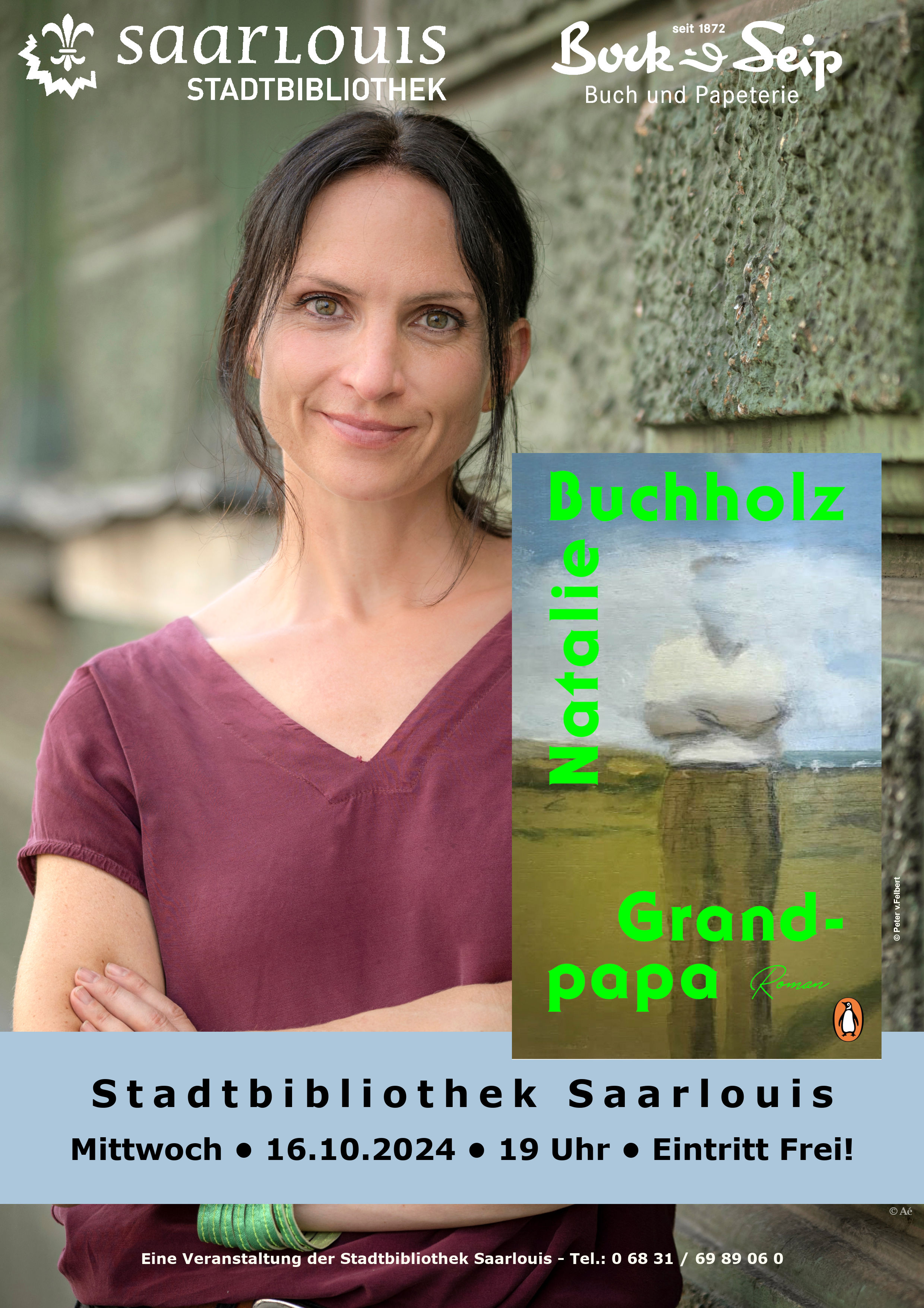 Am Mittwoch, 16. Oktober 2024 um 19 Uhr, ist Natalie Buchholz mit ihrem Roman „Grand-papa“, in dem sie die Lebensgeschichte ihres Großvaters bzw. die Zerrissenheit einer deutsch-französischen Identität erzählt in der Stadtbibliothek Saarlouis zu Gast. Eine vergessene Urne, ein neugieriges Kleinkind und der Schatten des Großvaters – so beginnen Natalie Buchholz Ermittlungen. Ein kleiner Zufallsfund ist es, der die Autorin an ihren verstorbenen Großvater Anatole erinnert. Sie findet seine „Memoiren eines Siebzigjährigen« in dem streng nach deutscher und französischer Literatur getrennten Bücherregal der Eltern. Wer war dieser zwischen Deutschland und Frankreich hin- und hergerissene Mann? Erstmals setzt sich Natalie Buchholz mit dem aus Lothringen stammenden Großvater auseinander, der stets ein Fremder für sie war und doch bis in ihr eigenes Leben hineingewirkt hat. In seinen jungen Jahren geht er zur französischen Armee, den Zweiten Weltkrieg allerdings erlebt er als zwangsrekrutierter Soldat der Wehrmacht. Danach entscheidet er sich vehement für eine Seite und lehnt sogar seine Tochter ab, die einen Deutschen heiratet, ihren Vater. Lange Zeit dachte die Autorin, der Grund dafür sei sein Leiden unter den Deutschen während des Krieges gewesen. So jedenfalls lautete eine der Familienlegenden, mit denen sie groß geworden ist. Dieser Legende ist sie nachgegangen und dabei zu einer überraschenden Erkenntnis gekommen. Es ist auch die tragische Liebesgeschichte des Großvaters mit einer Saarländerin, die eigentlich für ihn bestimmt ist, als Ehefrau aber nicht infrage kommt, weil sie Deutsche und damit Feindin ist – und trotzdem allen als Freundin der Familie ein Leben lang verbunden bleibt. In Ihrem Familienporträt spiegelt sich die deutsch-französische Geschichte des vergangenen Jahrhunderts, das Schicksal der Menschen im Elsass und in Lothringen. Nathalie Buchholz erzählt kühn und persönlich von der Zerrissenheit einer Familie zwischen zwei Nationen, die lange als Erbfeinde galten. Die Lebensgeschichte des Anatole Frey erzählt die Autorin mit einer feinfühligen poetischen Sprache, obwohl der Inhalt eigentlich oft zu hart dafür ist. Natalie Buchholz wurde 1977 in Frankreich geboren und wuchs in München und dem Münchner Umland auf. Sie studierte Kulturwissenschaften und Ästhetische Praxis an der Universität Hildesheim und an der Université Aix-Marseille. Bislang erschienen von ihr die Romane »Der rote Swimmingpool«, »Unser Glück« sowie eine Jugendbuch-Reihe. Natalie Buchholz wurde für ihr literarisches Schaffen mehrfach ausgezeichnet. Unter anderem erhielt sie 2023 das Ludwig-Harig-Stipendium, das dazu beitrug, dass dieser Roman entstand. Sie lebt mit ihrer Familie in München und im Inntal. Die Lesung von Natalie Buchholz aus ihrem im August erschienenen Roman „Gran-papa“ findet am Mittwoch, 16. Oktober 2024 um 19 Uhr in der Stadtbibliothek Saarlouis im Theater am Ring statt. Der Eintritt ist frei. Die Stadtbibliothek Saarlouis und die Buchhandlung Bock & Seip laden zu dieser Lesung, die die komplexe Geschichte unserer Grenzregion, die nach wie vor ein weißer Fleck auf der Landkarte Europas ist, herzlich ein.