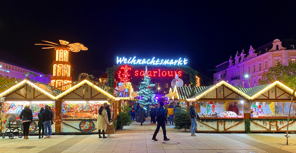 Weihnachtsidylle wie in einem winterlichen Bergdorf – dafür steht der Weihnachtsmarkt in der historischen Festungsstadt Saarlouis. In diesem Jahr findet er vom 20.11. bis 23.12.2023 auf dem Kleinen Markt statt und präsentiert über 50 liebevoll dekorierte Hütten und Aktionsbereiche. Besonderes Highlight ist die mit 700 qm Fläche größte mobile Eis-Arena im Saarland, die sich seit Jahren einer überaus großen Beliebtheit bei Jung und Alt erfreut und zum Drehen einiger Runden auf dem Eis einlädt.