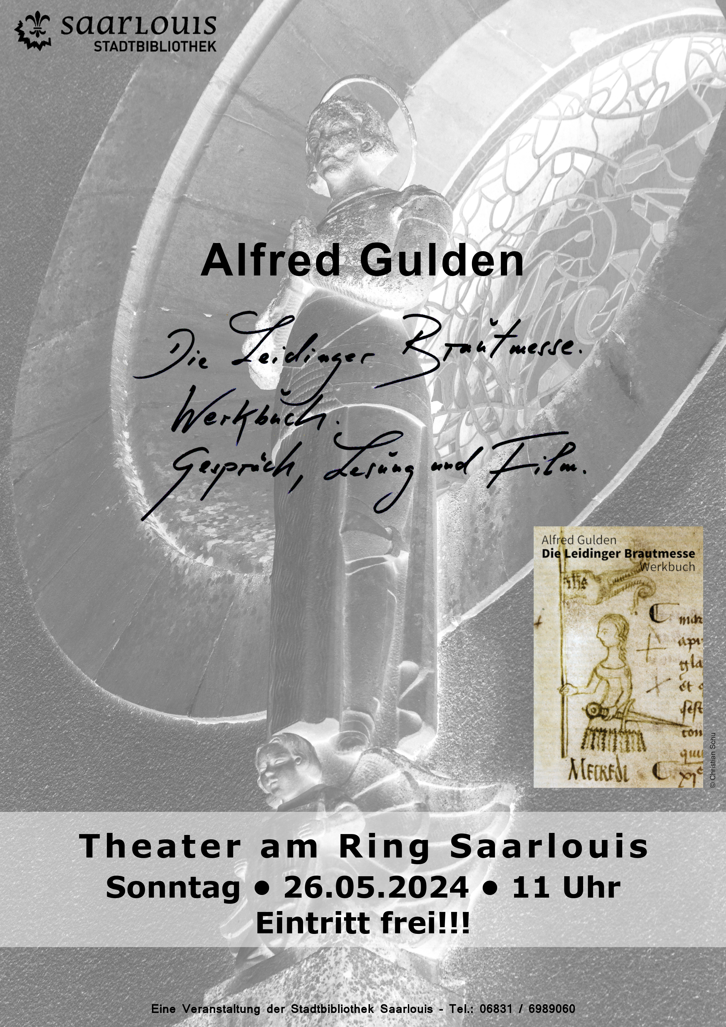 Von der Idee bis zum fertigen Werk mit dem Titel „Die Leidinger Brautmesse“, das am Sonntag, dem 26. Mai 2024 im Rahmen einer literarischen Matineé der Stadtbibliothek Saarlouis mit Alfred Gulden Premiere feiert, dauerte es über ein Jahrzehnt. In den Jahren 2010 bis 2011 gab es erste Versuche von Alfred Gulden, aus einem Prosatext mit vielen Personen ein Libretto zu machen. Andere Arbeiten schoben sich in den Vordergrund, so dass er die Arbeit daran unterbrach. 2015 ein neuer Versuch, auch dieser ergab nur einige Fragmente aber kein ganzes Werk. In den Jahren 2019 bis 2023 dann schließlich entstand der fertige Text.