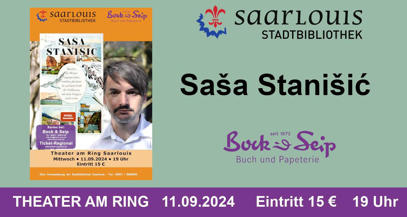 Am Mittwoch, 11. September 2024 ist Saša Stanišić mit seinem im Mai erschienenen Roman „Möchte die Witwe angesprochen werden, platziert sie auf dem Grab die Gießkanne mit dem Ausguss nach vorne“ in Saarlouis zu Gast. Die Stadtbibliothek Saarlouis und die Buchhandlung Bock & Seip freuen sich, den preisgekrönten Autor im Theater am Ring zu Gast zu haben. Was wäre, wenn man nicht diese eine Entscheidung getroffen hätte, sondern jene andere? Was wäre, hätte man der Erwartung getrotzt? Und dann ist da trotzdem die Furcht, feige gewesen zu sein, zu lange gezögert und etwas verpasst zu haben, ein besseres Ich, ein größeres Glück, die lustigeren Haustiere und Partner. Saša Stanišić führt uns an Orte, an denen das auf einmal möglich ist: den schwierigeren Weg zu gehen, eine unübliche Wahl zu treffen oder die eine gute Lüge auszusprechen. Stanišićs Helden sind keine Abenteurer, keine Stars. Es sind einfach „normale Leute“ Sie leben wie du und ich ihr Leben in Bremen, in Heidelberg oder in der Lüneburger Heide. Für sie gibt es kein „Goldenes Buch“. Höchstens ein Silbernes Buch für normale Leute, die einfach sind und sonst nichts und sich fragen, was noch kommen mag. Saša Stanišić wurde 1978 in Višegrad (Jugoslawien) geboren und lebt seit 1992 in Deutschland. Seine Werke wurden in mehr als vierzig Sprachen übersetzt und viele Male ausgezeichnet. Für seinen zweiten Roman „Vor dem Fest“ erhielt er 2014 den Preis der Leipziger Buchmesse in der Kategorie Belletristik. 2019 bekam er den „Deutschen Buchpreis für seinen Roman „Herkunft“. Saša Stanišić lebt und arbeitet in Hamburg. In 12 Kurzgeschichten beschreibt der Autor in seinem neuen Buch wie man das Leben meistert oder es zu mindestens versucht. So richtige Kurzgeschichten sind es aber doch nicht. Es wäre nicht ein richtiger Saša Stanišić, wenn der Autor einen nicht etwas aufs Glatteis beim Lesen führen wollte. Die „Kurzgeschichten“ hängen alle irgendwie doch zusammen, dass merkt man aber erst, wenn man das unterhaltsame aber auch zum Nachdenken anregende Buch gelesen hat. Wobei dieses Mal uns der Autor vorm „Glatteis“ schon früh warnt. Stanišić, der selbst im Buch mitspielt, bittet uns gleich am Anfang augenzwinkernd „Bitte der Reihe nach lesen“. Man denkt zunächst natürlich an einen Scherz, der Autor ist ja, wie gesagt, bekannt dafür, seine Leserinnen und Leser mit beiläufig Verschmitztem aufs Glatteis zu führen. Diesem Hinweis sollte man aber dieses Mal folgen. Das macht das Buch, wenn es überhaupt noch möglich ist, noch lesenswerter. Stanišić erzählt vom Zufall, von wahrscheinlichen und unwahrscheinlichen Entscheidungen, den Möglichkeiten, wie ein Leben verlaufen kann, und vom Grübeln an den Kreuzwegen unserer Biografie. „Wer dies alles und vor allem Saša Stanišić live erleben will, ist herzlich willkommen zur Lesung der Stadtbibliothek Saarlouis und Bock & Seip Karten zum Preis 15 € (ermäßigt 12 €) gibt es bei der Buchhandlung Bock & Seip (u.a. in ihrer Filiale in Saarlouis, Großer Markt 2, Tel. 06831 50076-25, eMail: city.sls@bock-seip.de), bei den Vorverkaufsstellen von Ticket Regional und online unter www.ticket-regional.de. Die Lesung findet am Mittwoch, 11.09.2024 um 19 Uhr im Theater am Ring Saarlouis statt. Einlass ist um 18:30 Uhr