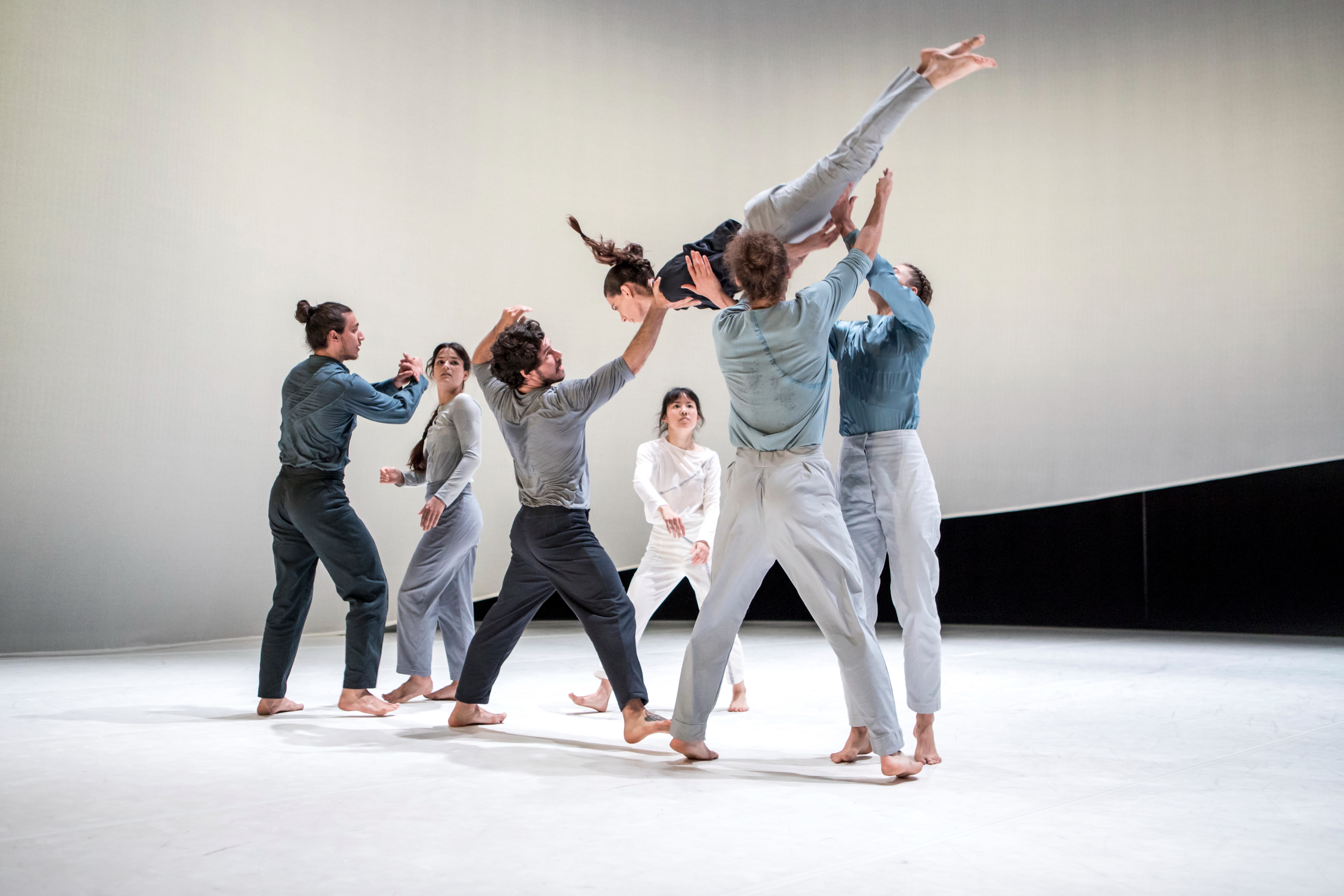 Mit ihrer jüngsten Arbeit »Made of Space« (uraufgeführt in Barcelona 2021) komplettiert das libanesisch-spanische Duo seine Trilogie rund um Rhythmus, Zeit, Raum und Vergäng-lichkeit. Nader und Campos kreieren hier Bewegungsmaterial, das präzise und filigran wie ein Uhrwerk ineinandergreift und Tänzer wie Publikum in Atem hält. Hochdynamische Schrittkombinationen kulminieren in Sprüngen, Würfen und Drehungen, die in rauschhaftem Tempo den puren Tanz feiern. Die treibende Kraft für den unaufhaltsamen Bewegungsfluss ist die facettenreiche Live-Musik zweier Schlagwerkvirtuosen. Besetzt mit sieben Performern, ist »Made of Space« ein furioses Tanzstück voll wunderbar bewegter Metaphern für den Lebenszyklus aus Entstehen und Vergehen.