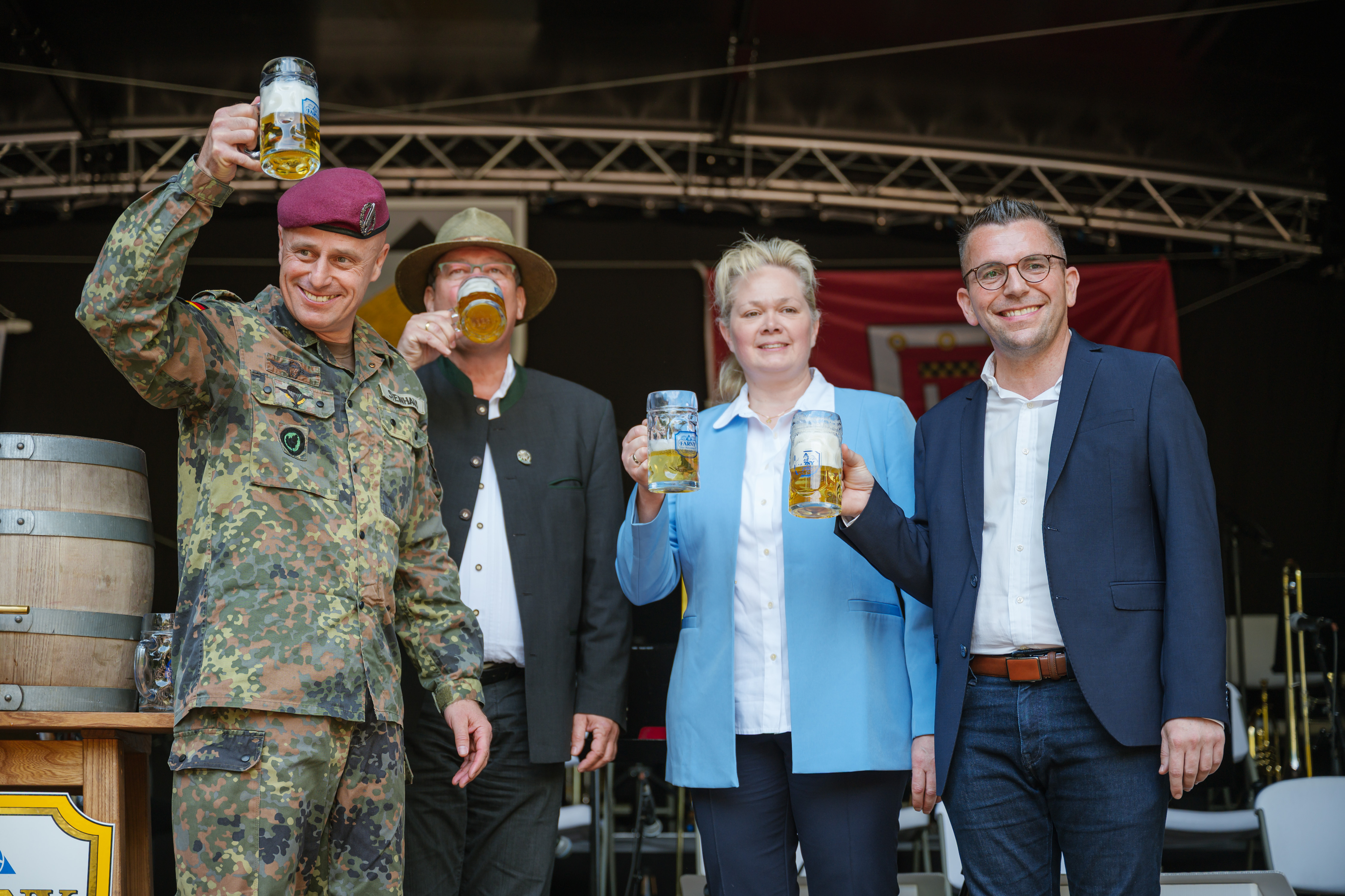 Auftakt der Veranstaltung war die offizielle Eröffnung mit Fassanstich durch Oberbürgermeister Marc Speicher und Brigadegeneral Andreas Steinhaus um 11 Uhr. Die Stadtspitze um Oberbürgermeister Speicher und Bürgermeister Carsten Quirin überzeugte sich gemeinsam mit zahlreichen Gästen von den Fähigkeiten der Brigade. Höhepunkt der Feierlichkeiten war ein Appell um 14 Uhr, bei dem der scheidende Brigadegeneral Steinhaus stellvertretend für die Leistungen der Truppe durch die Verleihung der Ehrenbürgerschaft der Stadt Saarlouis gewürdigt wurde.