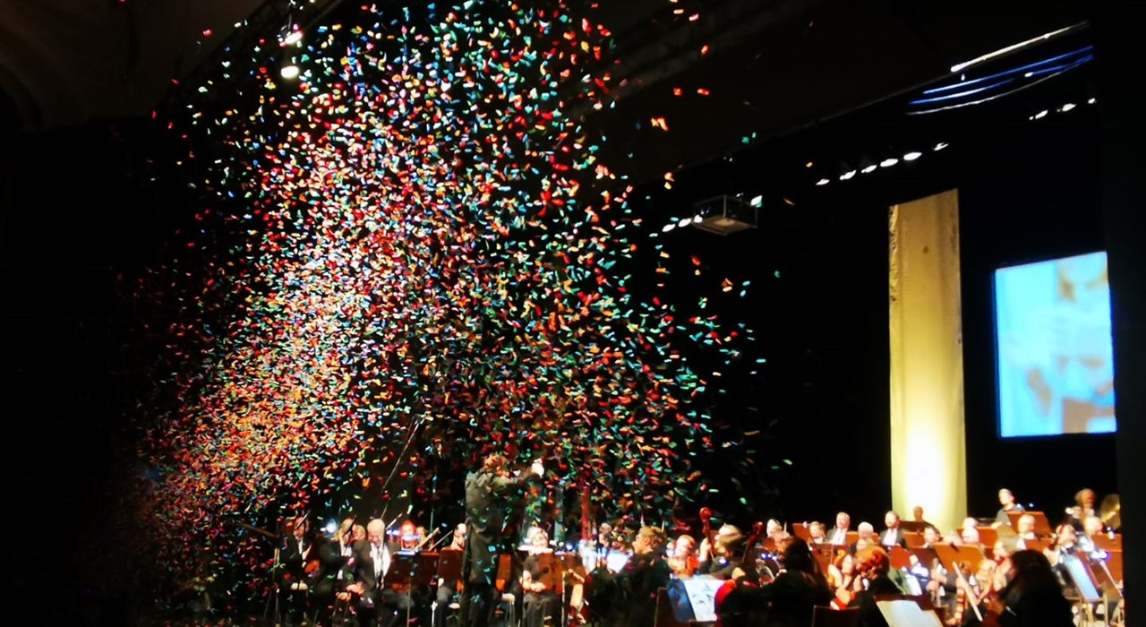 Vor fast ausverkauften Rängen spielte das herausragende KreisSymphonieOrchester unter Leitung von Christian Schüller. Den Gästen, darunter Oberbürgermeister Peter Demmer und Landrat Patrik Lauer, bot sich eine fast zweistündige musikalische Reise mit Stücken aus Oper, Operette, Musical und Filmmusik. Unter anderem hörten sie im klassischen Teil des Konzerts Werke von Wolfgang Amadeus Mozart, George Bizet und Carl Maria von Weber. Nach einer kurzen Pause folgten bekannte Melodien wie die „Berliner Luft“, „Ich lade mir gern Gäste ein“ und „Da geh ich zu Maxim“. Den furiosen Abschluss bildete wie stets der „Radetzky-Marsch“, bei dem das begeisterte Publikum alle Akteure mit stehenden Ovationen feierte.