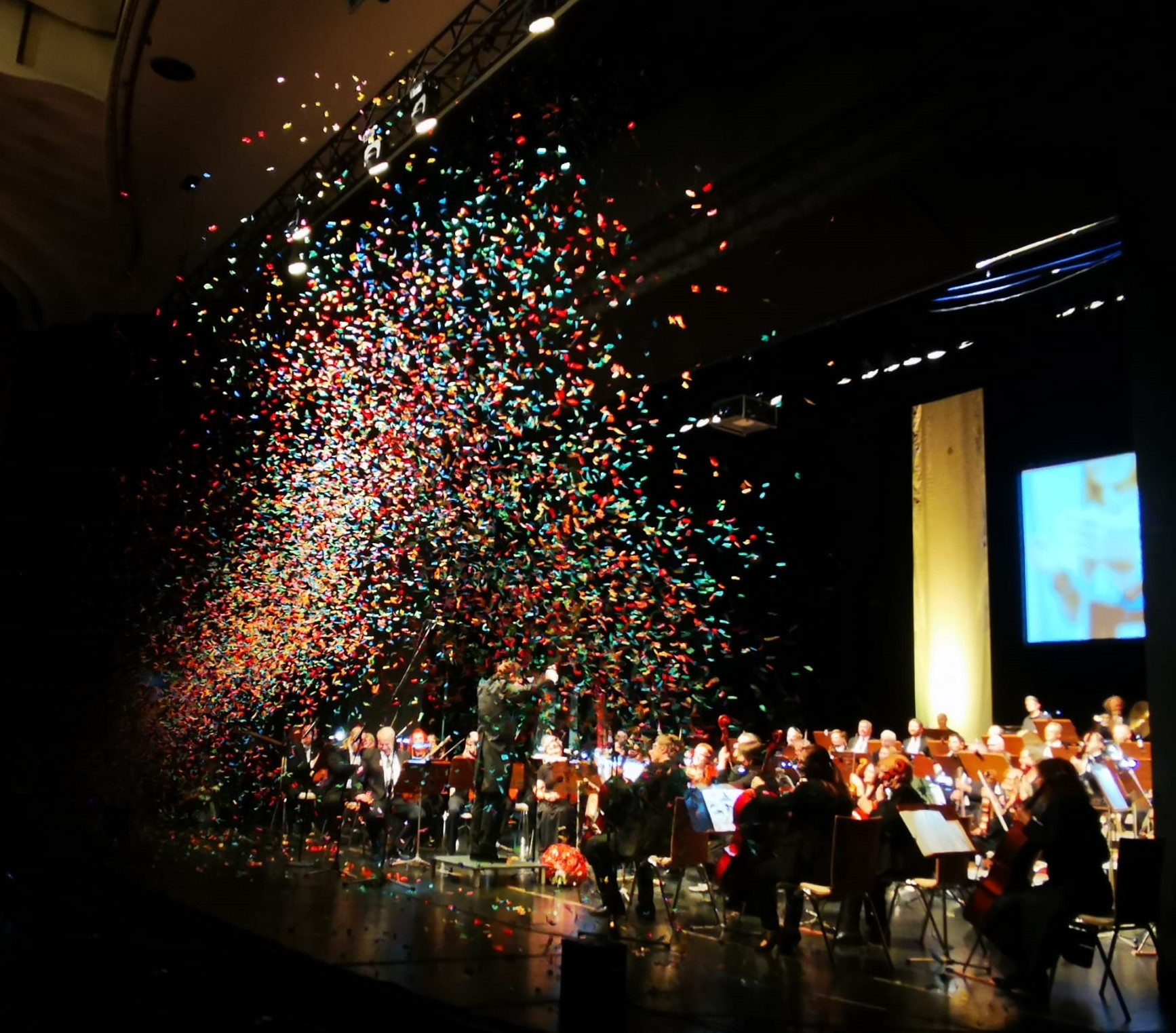 Vor fast ausverkauften Rängen spielte das herausragende KreisSymphonieOrchester unter Leitung von Christian Schüller. Den Gästen, darunter Oberbürgermeister Peter Demmer und Landrat Patrik Lauer, bot sich eine fast zweistündige musikalische Reise mit Stücken aus Oper, Operette, Musical und Filmmusik. Unter anderem hörten sie im klassischen Teil des Konzerts Werke von Wolfgang Amadeus Mozart, George Bizet und Carl Maria von Weber. Nach einer kurzen Pause folgten bekannte Melodien wie die „Berliner Luft“, „Ich lade mir gern Gäste ein“ und „Da geh ich zu Maxim“. Den furiosen Abschluss bildete wie stets der „Radetzky-Marsch“, bei dem das begeisterte Publikum alle Akteure mit stehenden Ovationen feierte.