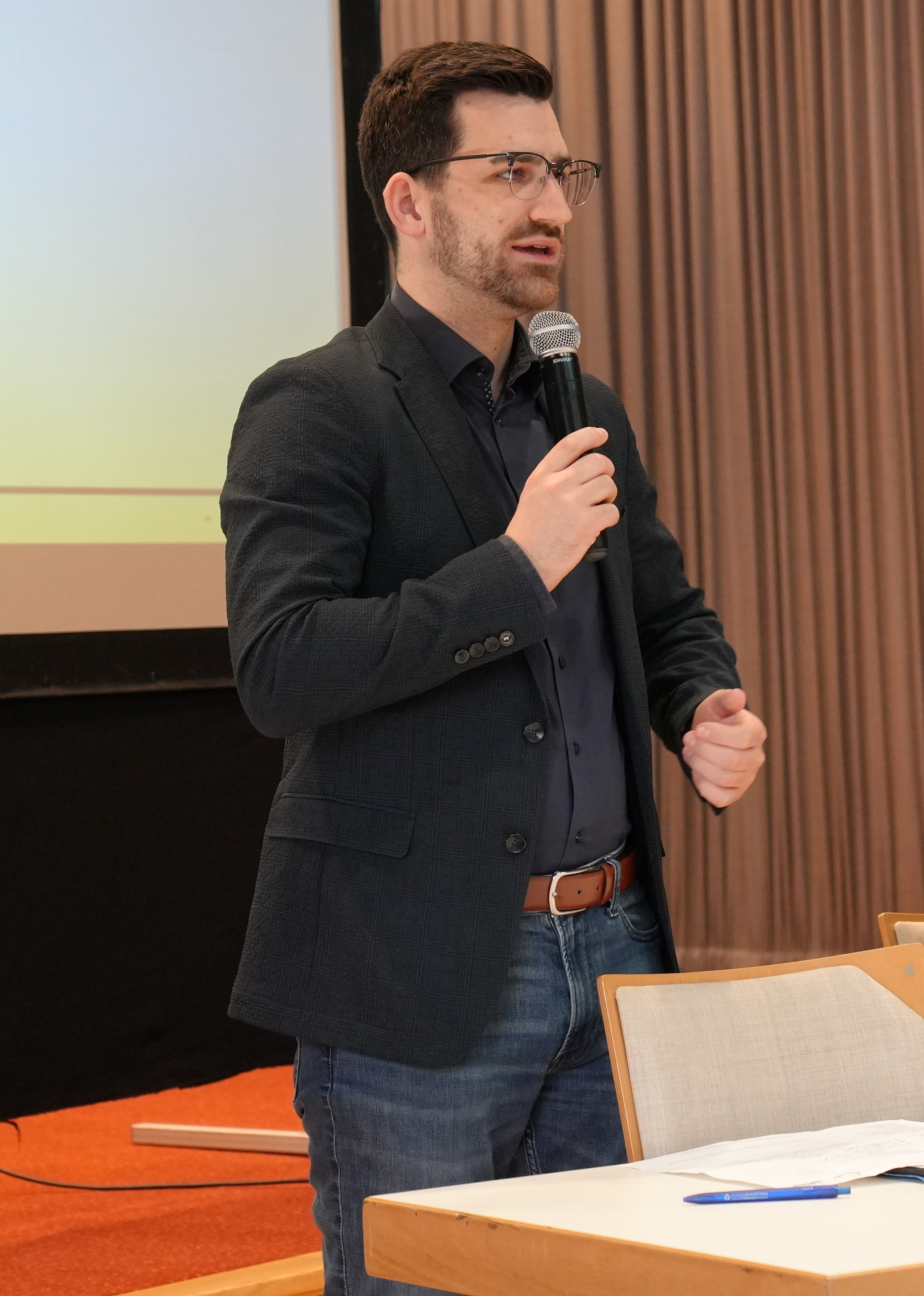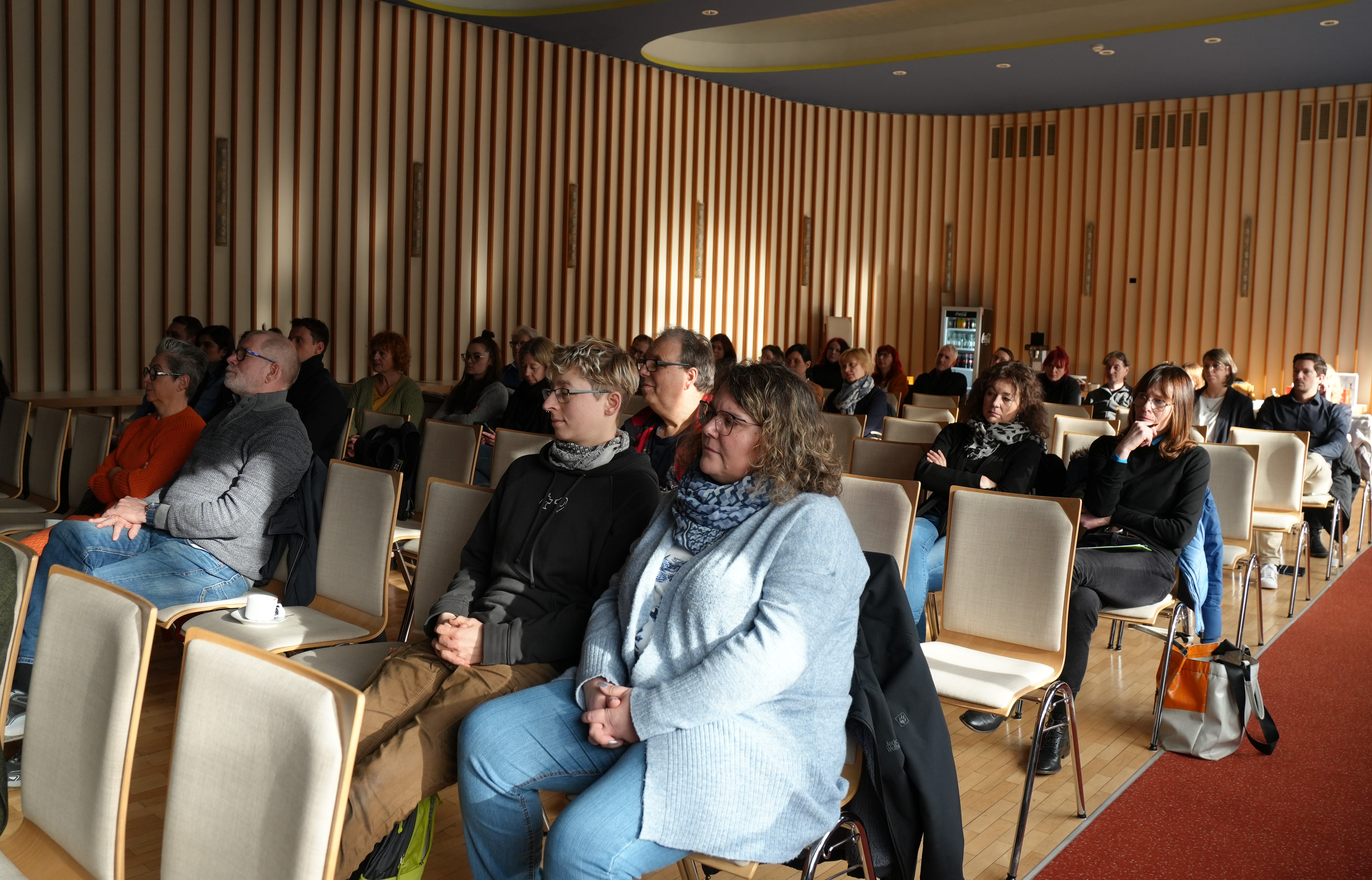 Bürgermeister Carsten Quirin begrüßt die Mitglieder der Netzwerke Wohnungslosigkeit sowie Armut, Gesundheit und soziale Teilhabe der Stabsstelle Sozialplanung im Theater am Ring.