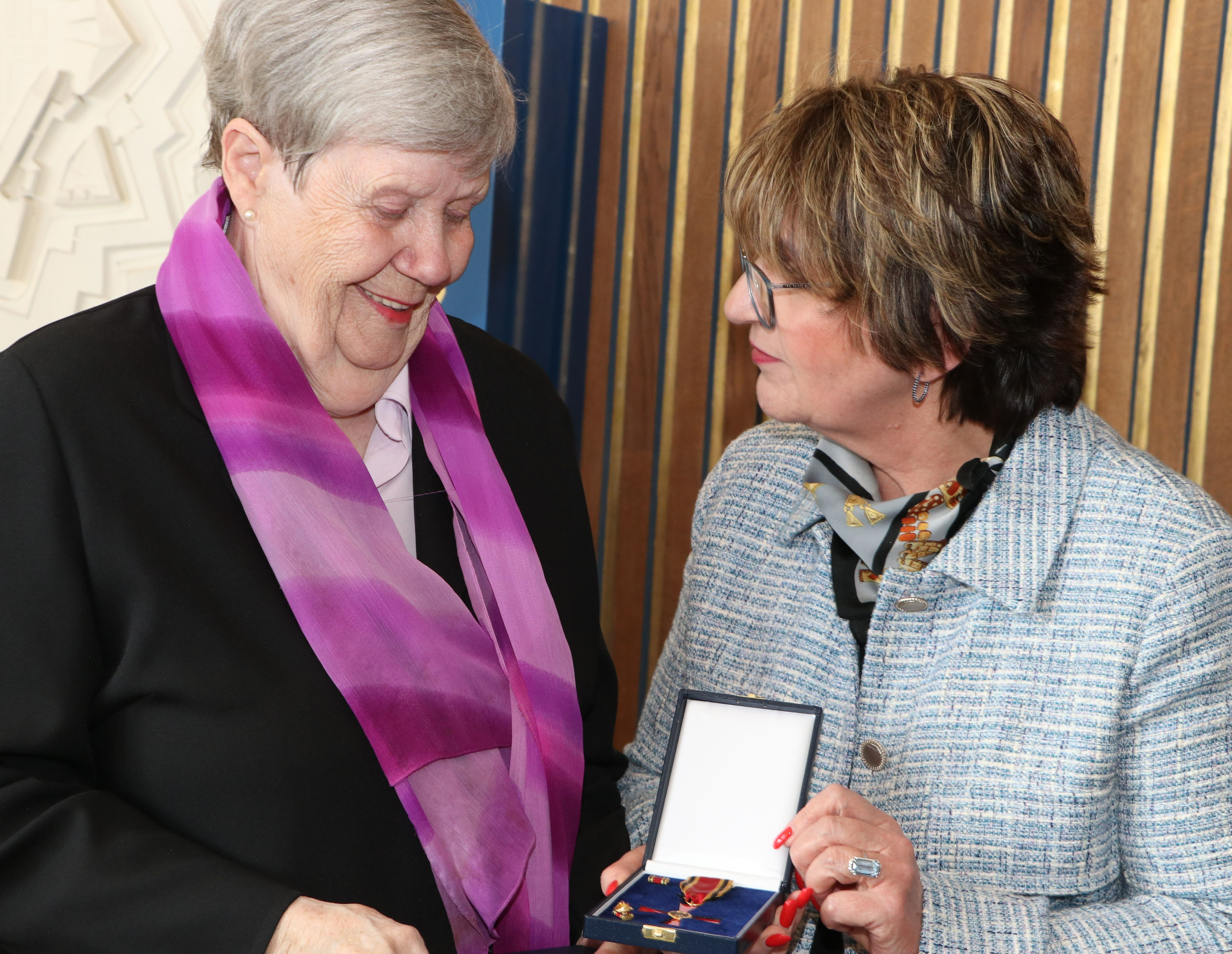 Staatssekretärin Bettina Altesleben (re.) überreicht Angelika Plewka den Verdienstorden der Bundesrepublik Deutschland, umgangssprachlich das Bundesverdienstkreuz genannt. Fotos: Petra Molitor