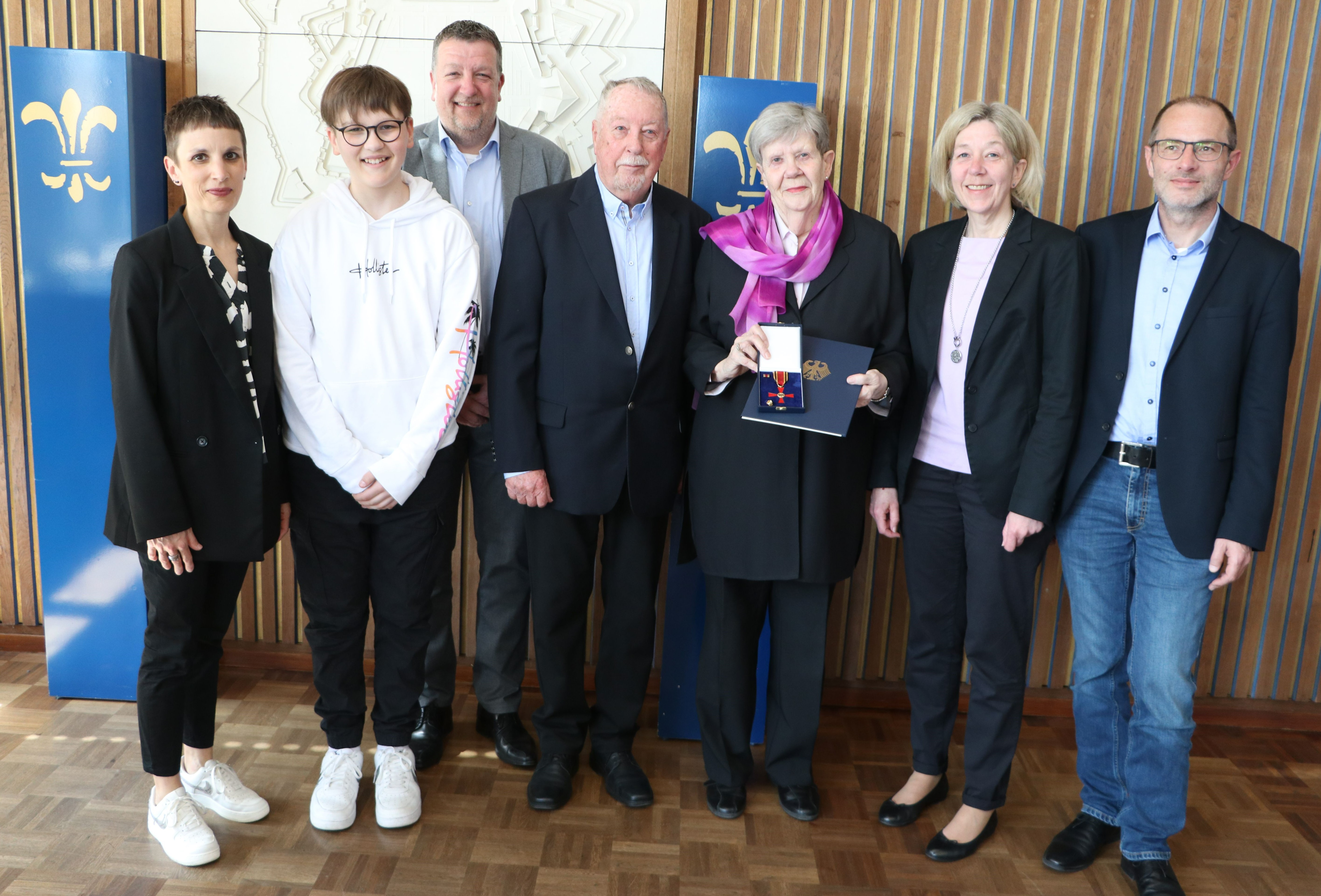 Das merkte man auch bei der Ordensverleihung mit vielen Gästen. Sichtbar aufgeregt und auch ein bisschen beschämt über das große Interesse an ihrer Person, lauschte die 80-Jährige umrahmt von ihrem Ehemann Ulrich und den Kindern Anette und Sebastian den Ausführungen der Staatssekretärin und des Bürgermeisters, die neben immenser Wertschätzung auch viele liebevolle Details und wiederholten Anlass zum Schmunzeln boten. Die neue Trägerin des Bundesverdienstkreuzes bedankte sich anschließend bei ihrer Familie und vielen Weggefährten für die vielfältige Unterstützung.