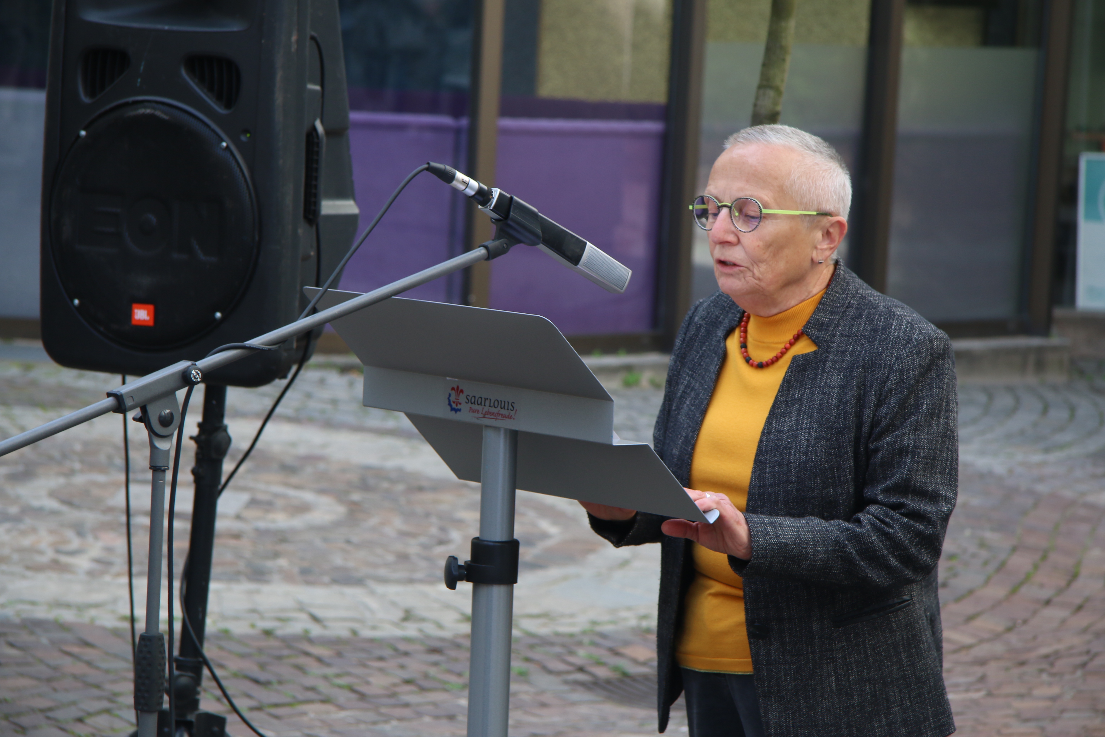 Nach seiner Einleitung übergab er das Mikrofon an Ricarda Kunger, die die Festrede bei der Platzeröffnung hielt. Sie blickte zurück auf das bewegte Leben der Geehrten, die 1924 in Saarlouis geboren wurde. „1935, nach der Rückgliederung des Saargebietes in das Deutsche Reich wurden auch die Repressalien gegen die jüdischen Familien stärker. Jüdische Kinder durften nicht mehr auf arische Schulen gehen, sie mussten fortan jüdische Schulen besuchen, so auch Esther Bejarano.