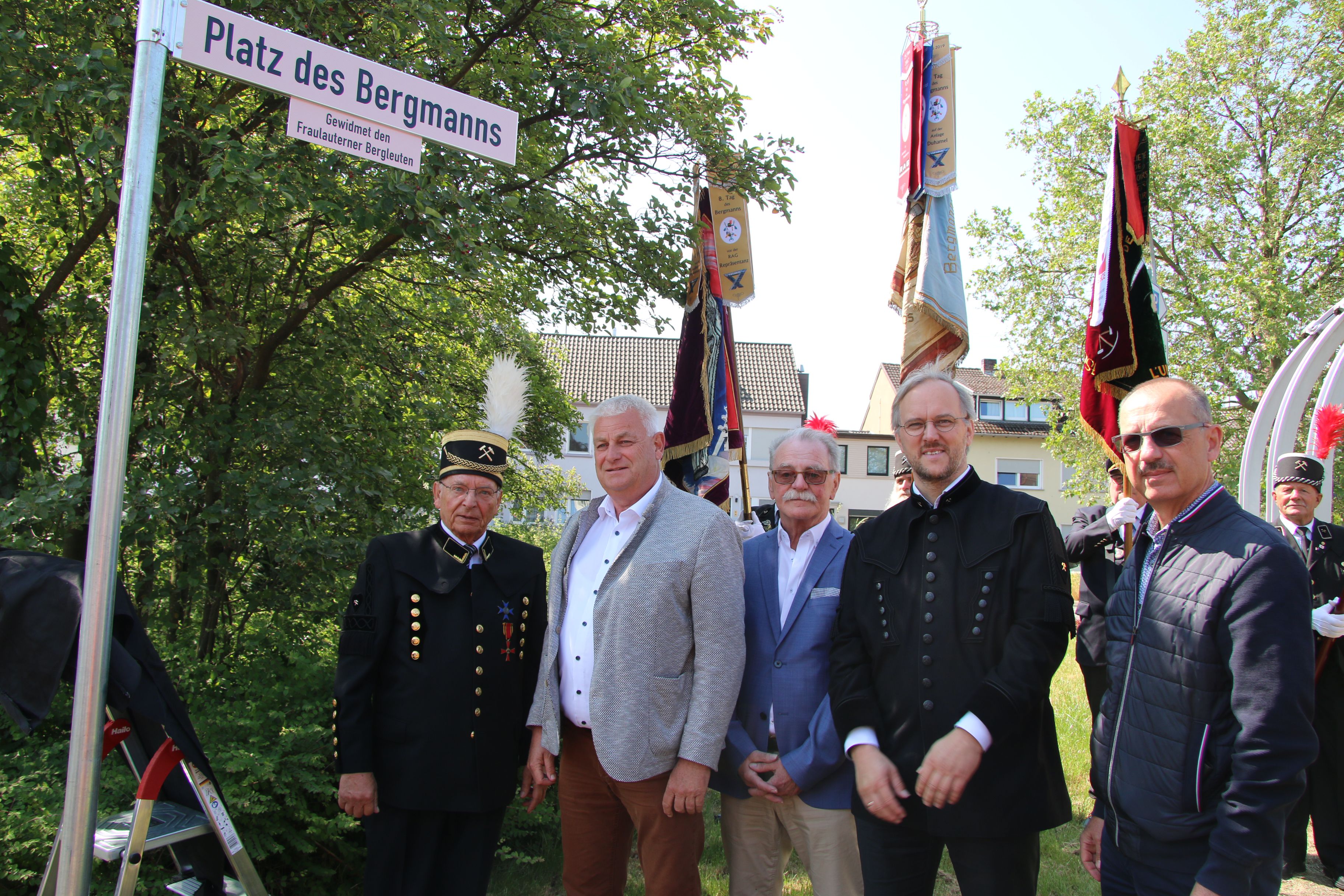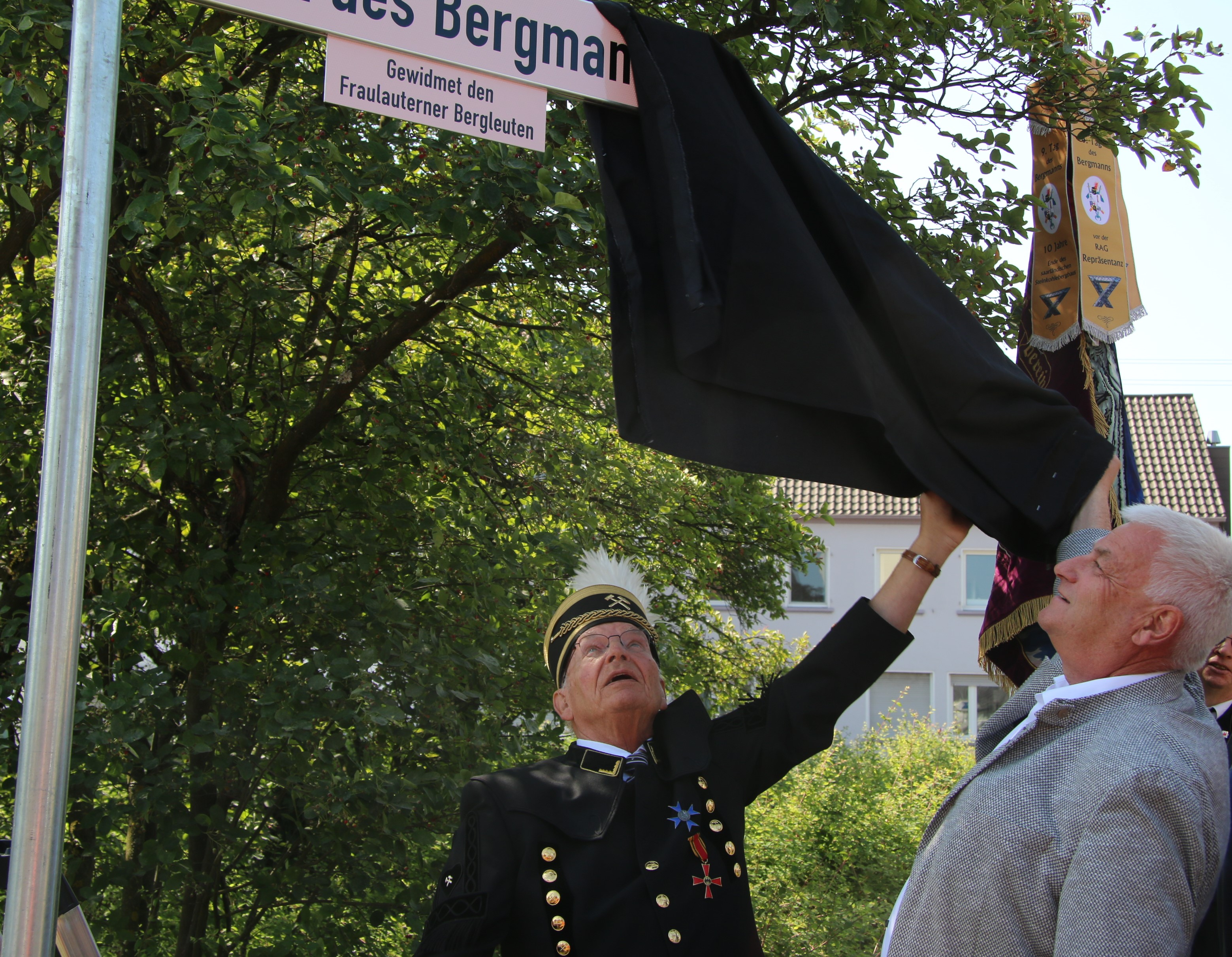 „Gewidmet ist der neue Platz in Dankbarkeit und Erinnerung allen Fraulauterner Bergleuten und damit verbunden ihren Werten, ihrer Kameradschaft und ihrer herausragenden Errungenschaften für Stadt und Land. Auch der großen Bedeutung des Bergbaus als prägendem Element der vergangenen, gegenwärtigen und zukünftigen Geschichte der Saar-Lor-Lux-Region wird heute mit der heutigen Benennung Rechnung getragen“, sagte Hiery und bedankte sich herzlich bei der zuständigen Quartiersmanagerin Jessica Fischer und Oberbürgermeister Peter Demmer, die auf seine Idee, einen „Platz des Bergmanns“ in Saarlouis zu schaffe , sofort mit Begeisterung und schneller Umsetzung reagierten. Auch die Damen und Herren des Stadtrates erwähnte er, die dem Vorschlag der Verwaltung einstimmig zustimmten. Unterstützung und Zuspruch erhielt Hiery auch von vielen Institutionen, Vereinen und Privatpersonen, stellvertretend hierfür wurden u. a. der Landkreis Saarlouis, beim Termin vertreten durch den 1. Kreisbeigeordneten Dietmar Bonner, und der Regionalbeauftragte der RAG für das Saarland, Michael Drobniewski – ebenfalls anwesend -, genannt.