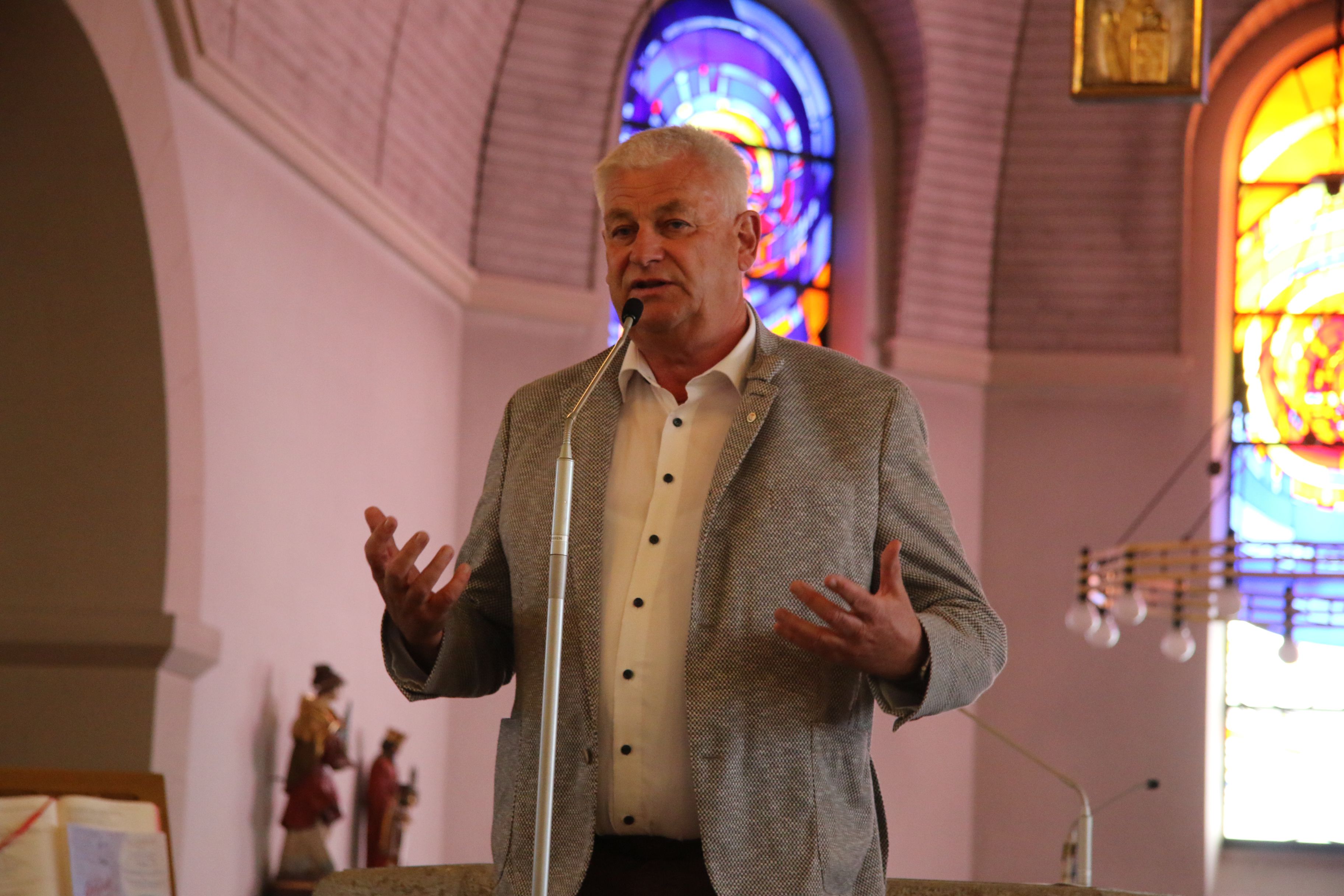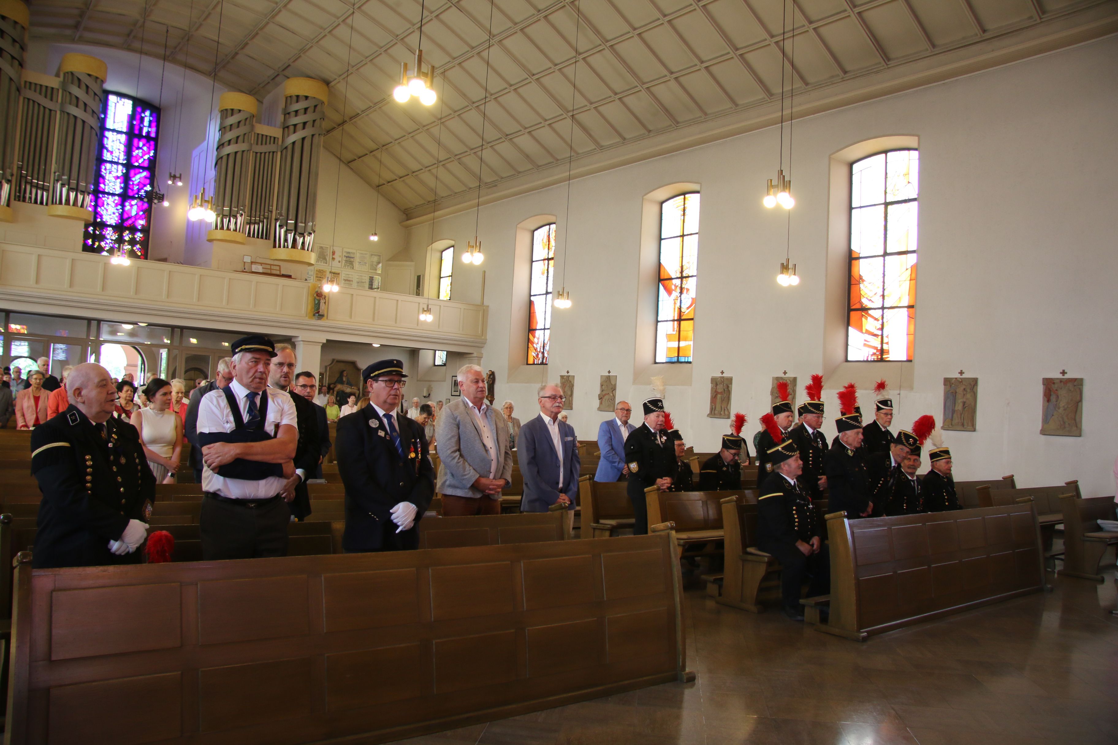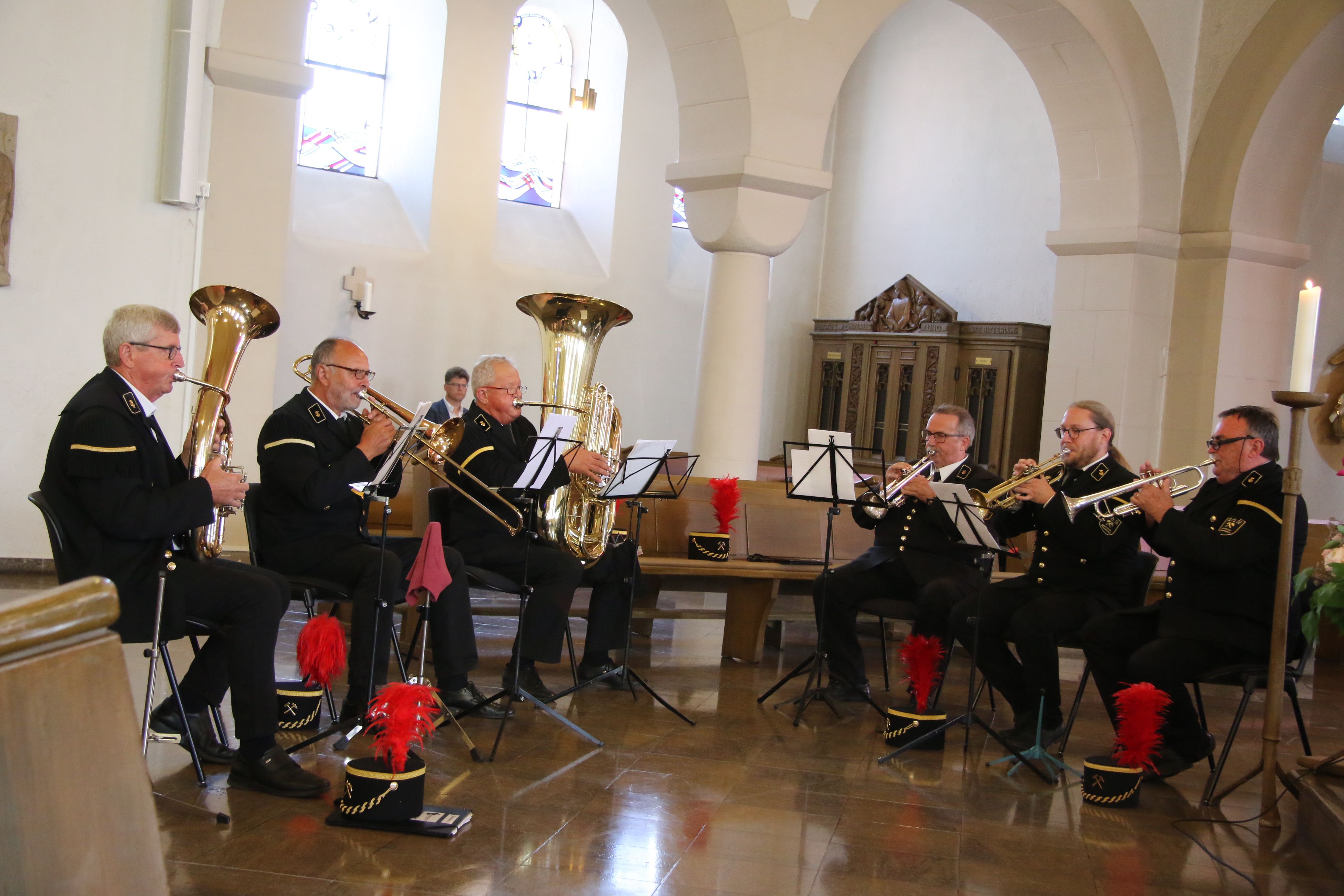 Obwohl die Heilige Barbara die Schutzpatronin der Bergleute ist, meinte es auch Petrus an diesem Junitag besonders gut mit den zahlreich erschienenen Gästen. Herrlicher Sonnenschein empfing sie im liebevoll genannten „Stadtteil mit Herz“, der mit seinen Bergleuten in der Blütezeit der Grube Duhamel mehr als 25 % der Belegschaft stellte. Nach einem Dankgottesdienst, musikalisch gestaltet vom Brass-Ensemble der Bergkapelle Saar unter der Leitung von Hans-Georg Schmitt, richteten Klaus Hiery und Peter Demmer das Wort an die Besucherinnen und Besucher der Veranstaltung.