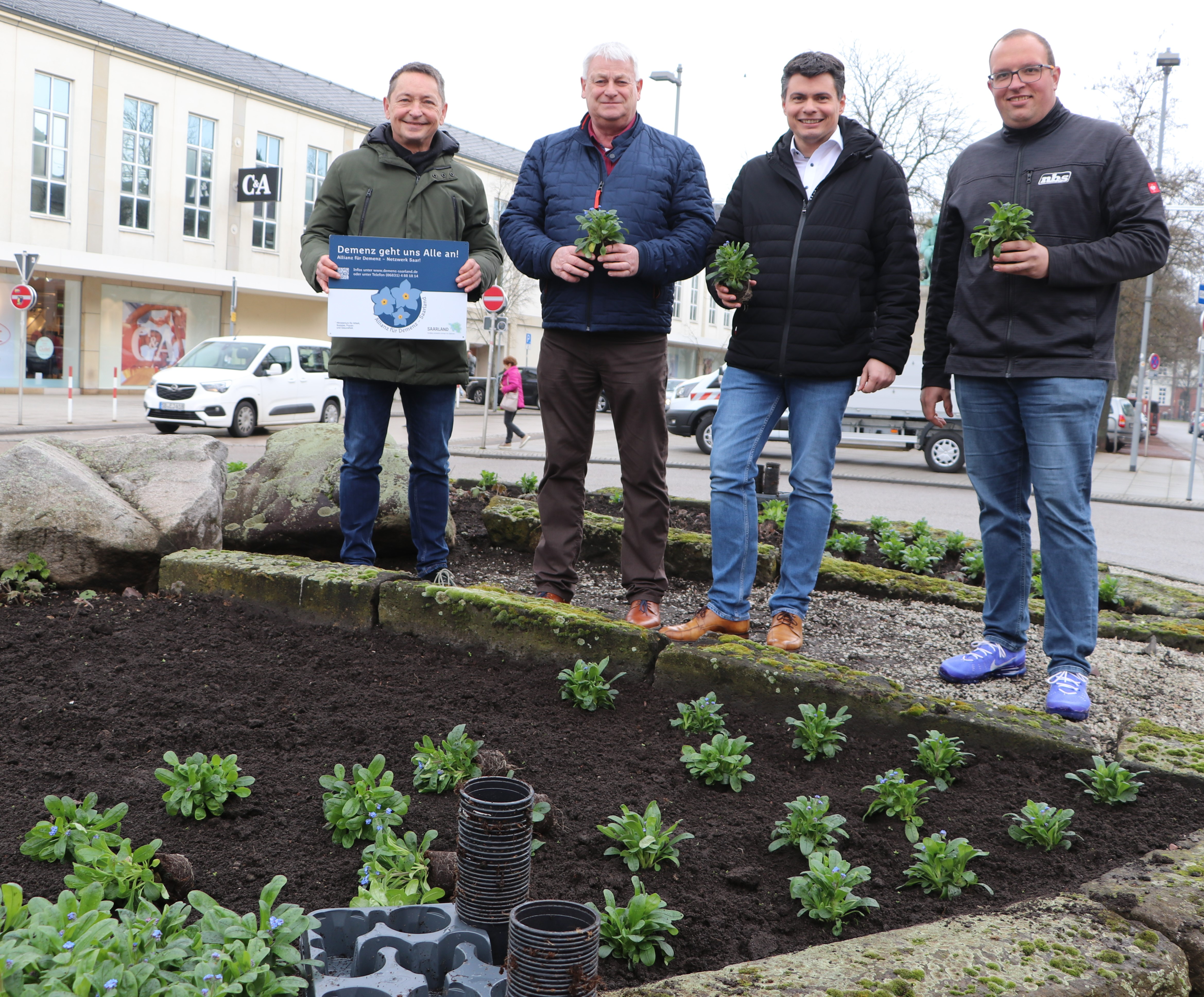 „Demenz geht uns alle an, schön, dass wir hier einen kleinen Beitrag zur Sichtbarkeit der Betroffenen leisten können“, so Oberbürgermeister Peter Demmer. Er dankte Andreas Sauder von der Landesfachstelle Demenz für die alljährliche Organisation der Pflanzaktion und dem Neuen Betriebshof Saarlouis für die Umsetzung.