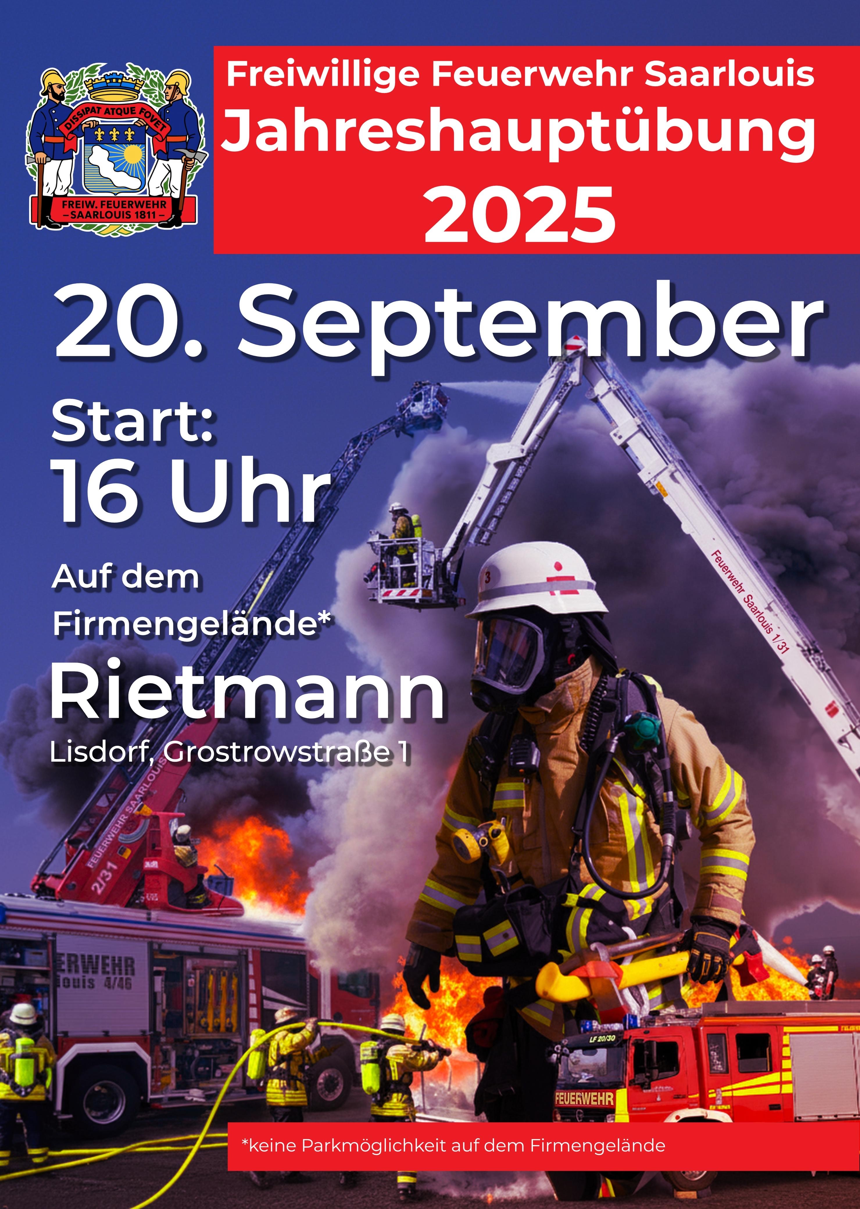 Am Samstag, 20. September 2025, ab 16 Uhr demonstrieren die vier Löschbezirke Innenstadt, Ost, Lisdorf und West auf dem Gelände der Firma Rietmann (Grostrowstraße 1, Lisdorf) ihr Können bei einem fiktiven Großschadensereignis. Das Übungsszenario sieht eine Explosion mit anschließendem Brand in einem Backmittelbetrieb vor.