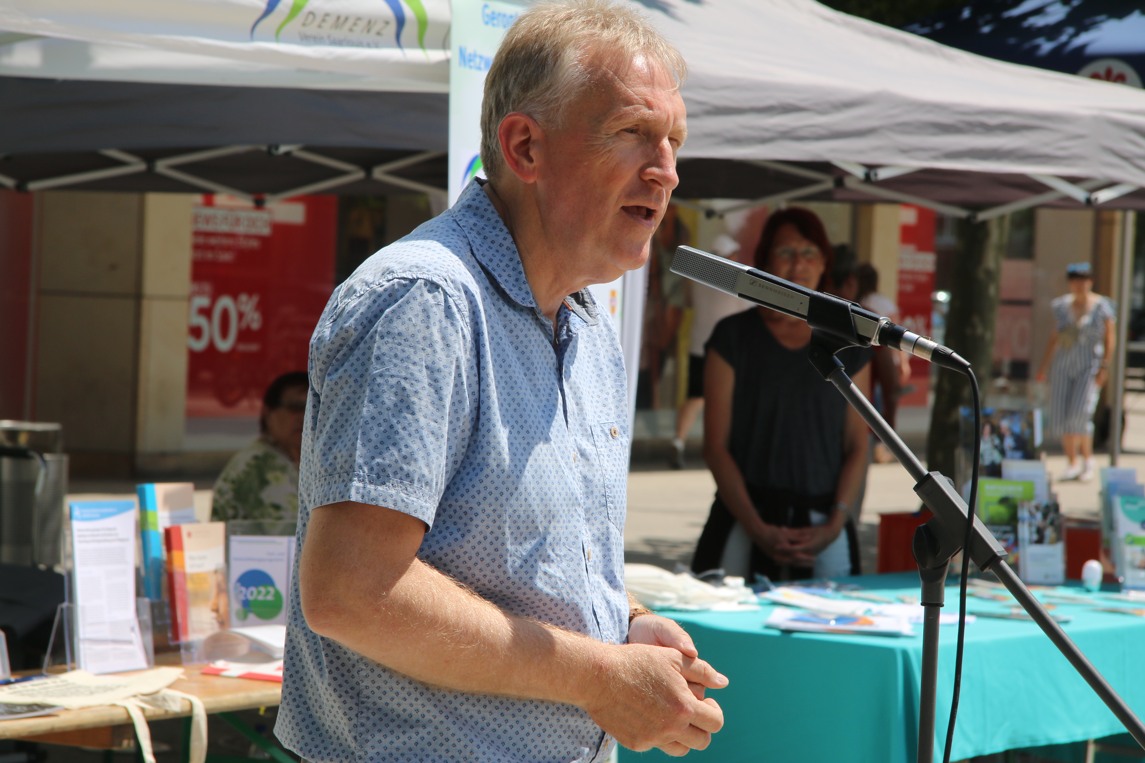 Um 13.00 Uhr eröffnete Dagmar Heib, Landtagsabgeordnete und Vorsitzende des Demenz-Vereins Saarlouis e.V., die Veranstaltung offiziell. Nach ihrer Begrüßung sprachen Landrat Patrik Lauer und der städtische Beigeordnete Günter Melchior. Anschließend führte Nobert Güthler-Tyarks zu Zissenhausen in historischer Uniform eine Gruppe bei einem Stadtrundgang in Leichter Sprache durch Saarlouis.