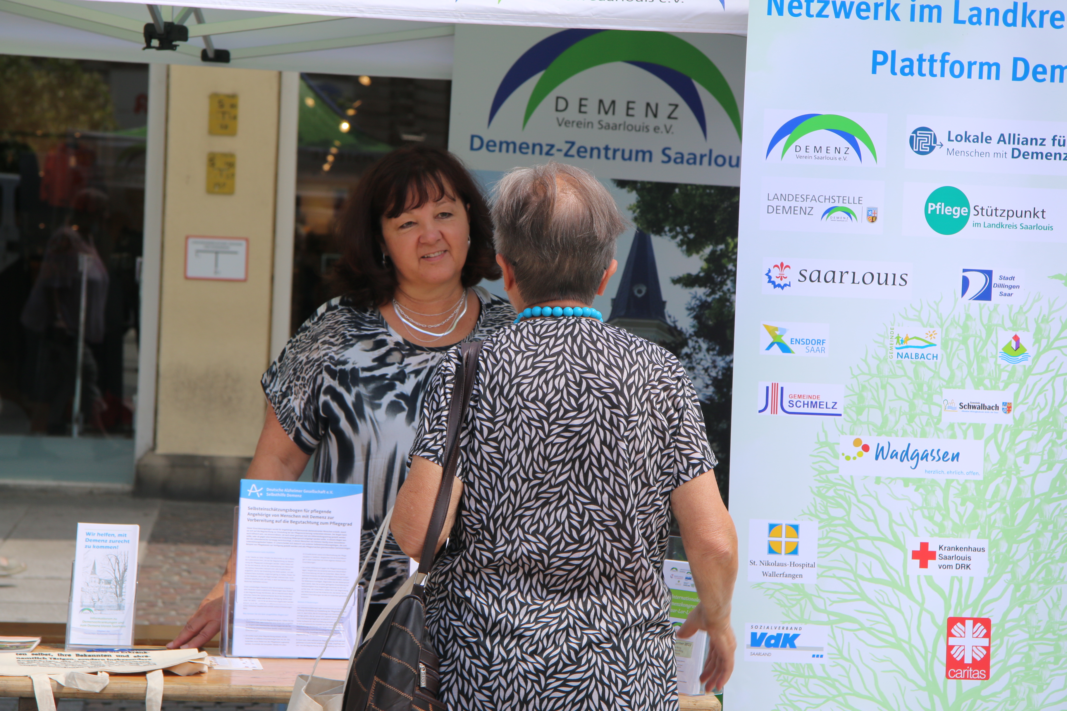 Auf dem Kleinen Markt stellten die mitwirkenden Institutionen und Einrichtungen ihre vielfältigen Angebote vor. Gemeinsames Ziel war es, mehr Öffentlichkeit für das Thema Demenz zu schaffen und dafür zu sensibilisieren. Im Saarland sind derzeit ca. 23.600 Menschen von einer Demenzerkrankung betroffen, im Landkreis Saarlouis sind es ca. 4.400 Personen.