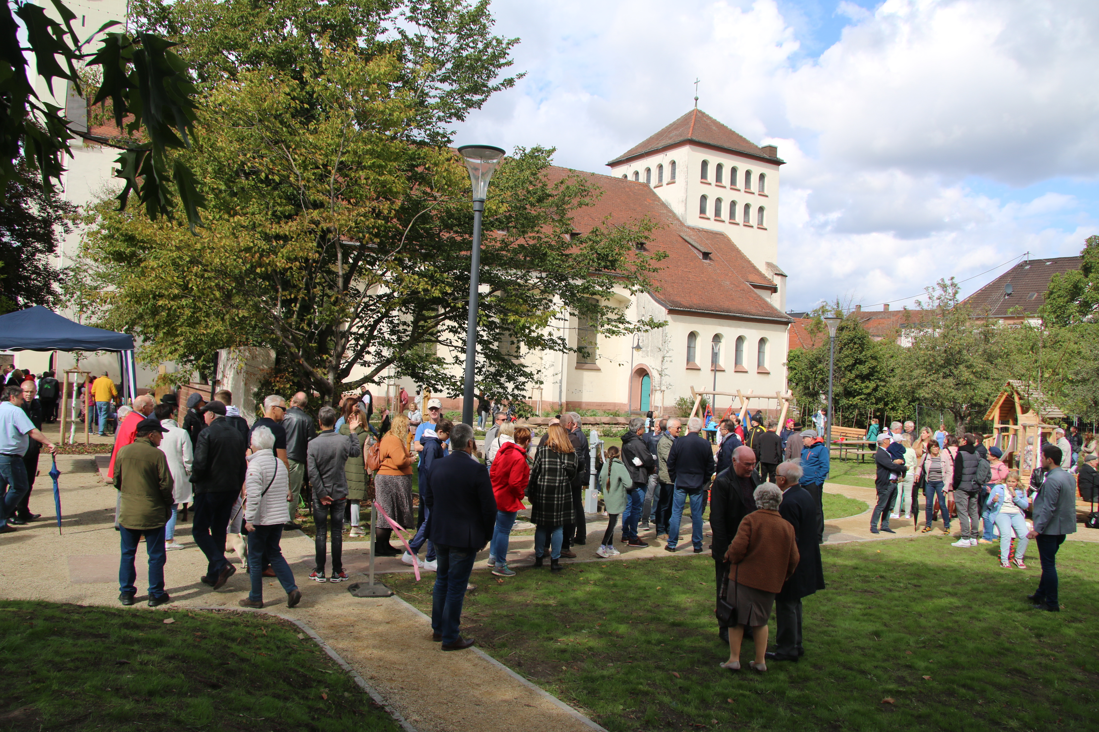 Gespannt warteten die Fraulauterner Bürgerinnen und Bürger seit Beginn der Planungen und konkreter Umsetzung auf die Fertigstellung ihres ehemaligen Pfarrgartens. Am Samstag den 17. September war es nun endlich soweit und der Alte Pfarrgarten wurde von Oberbürgermeister Peter Demmer feierlich für die Nutzung freigegeben. „Orte, an denen wir zwanglos zusammenkommen und austauschen können, sind in krisenbehafteten Zeiten wie diesen ein wichtiger Ankerpunkt. Daher freue ich mich umso mehr, dass wir in Fraulautern mit der Umgestaltung des Alten Pfarrgartens einen generationsübergreifenden Treffpunkt in zentraler Lage geschaffen haben, der zum Beisammensein, Verweilen und Erkunden einlädt“, so Demmer in seiner Eröffnungsrede. Er bedankte sich bei allen Mitwirkenden u. a. Quartiersmanagerin Jessica Fischer, allen beteiligten Fachämtern in der Stadtverwaltung und den Damen und Herren des Saarlouiser Stadtrates.