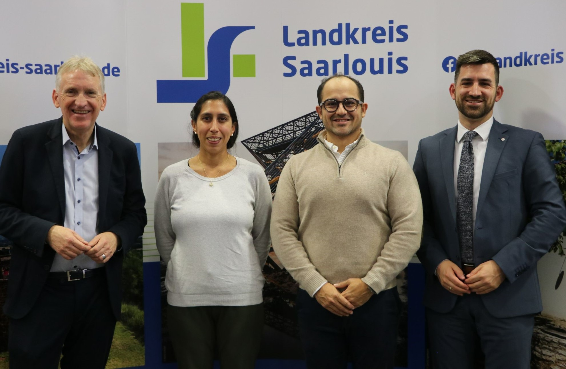 v.l.: Landrat Patrik Lauer, Viviana Hernandez Quijano, Andres Molina Calderon und Bürgermeister Carsten Quirin
