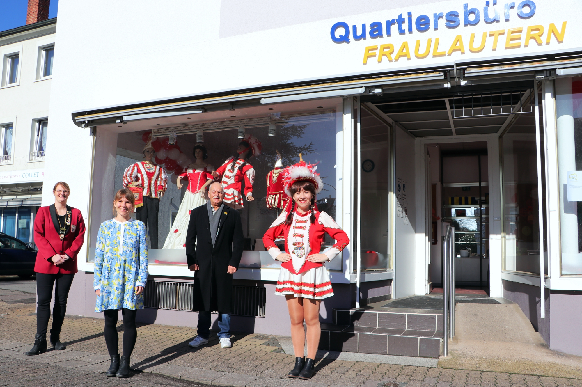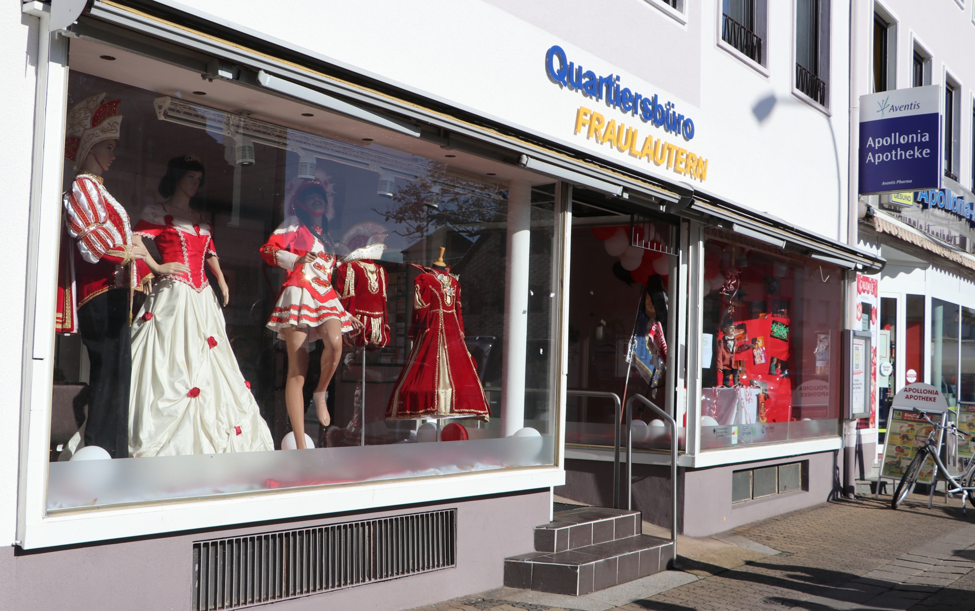 Prachtvoll geschmückt ist das Quartiersbüro Fraulautern: Passend zur fünften Jahreszeit hat die GKG Fraulautern die thematische Gestaltung des Lauterner Schaufensters übernommen und mit einer Vielzahl an Kostümen, Vereinstrachten, Wimpeln und Orden geschmückt. Das Lauterner Fenster ist eine Programmreihe des Quartiersbüros Fraulautern, bei dem Bürger und Vereine des Stadtteils die Möglichkeit haben, die großflächigen Schaufenster an der belebten Hauptstraße zu gestalten, um ihre eigenen Projekte zu präsentieren.
