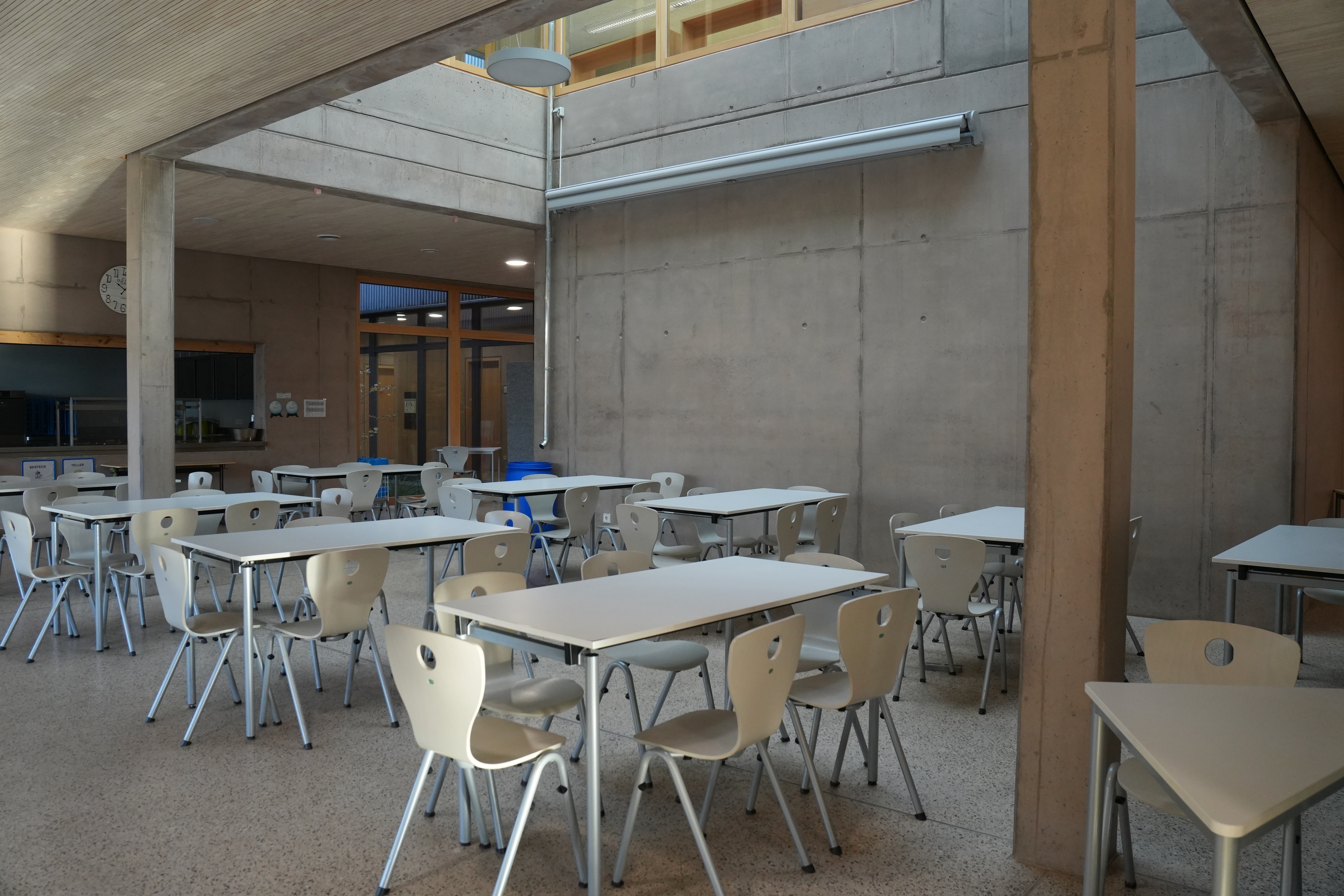 Unter 71 eingereichten Arbeiten wurden von der Jury 15 Projekte in die engere Wahl aufgenommen. Davon wurden neben drei Auszeichnungen sechs Projekte mit einer Anerkennung prämiert, darunter die Erweiterung der Grundschule Steinrausch, bei der die Jury besonders das exemplarische Raumkonzept und die angemessene Maßstäblichkeit lobt: „Der Neubau überzeugt durch sein Raumkonzept: Zwei Cluster mit jeweils zwei Klassenräumen teilen sich Gruppen- und Differenzierungsräume. Zwei Lichthöfe sorgen für zusätzliche Belichtung des Raumnetzes. Der Verzicht auf Flurbereiche lässt das Raumkonzept wie eine Wohnlandschaft wirken, die eine für Grundschule angemessene Räumlichkeit bietet. Das Projekt Erweiterung Grundschule Steinrausch überzeugt durch sein gelungenes Raumkonzept und wurde daher zurecht anerkannt“, so der Laudator Tobias Schneberger, Vorsitzender des BDA RLP.