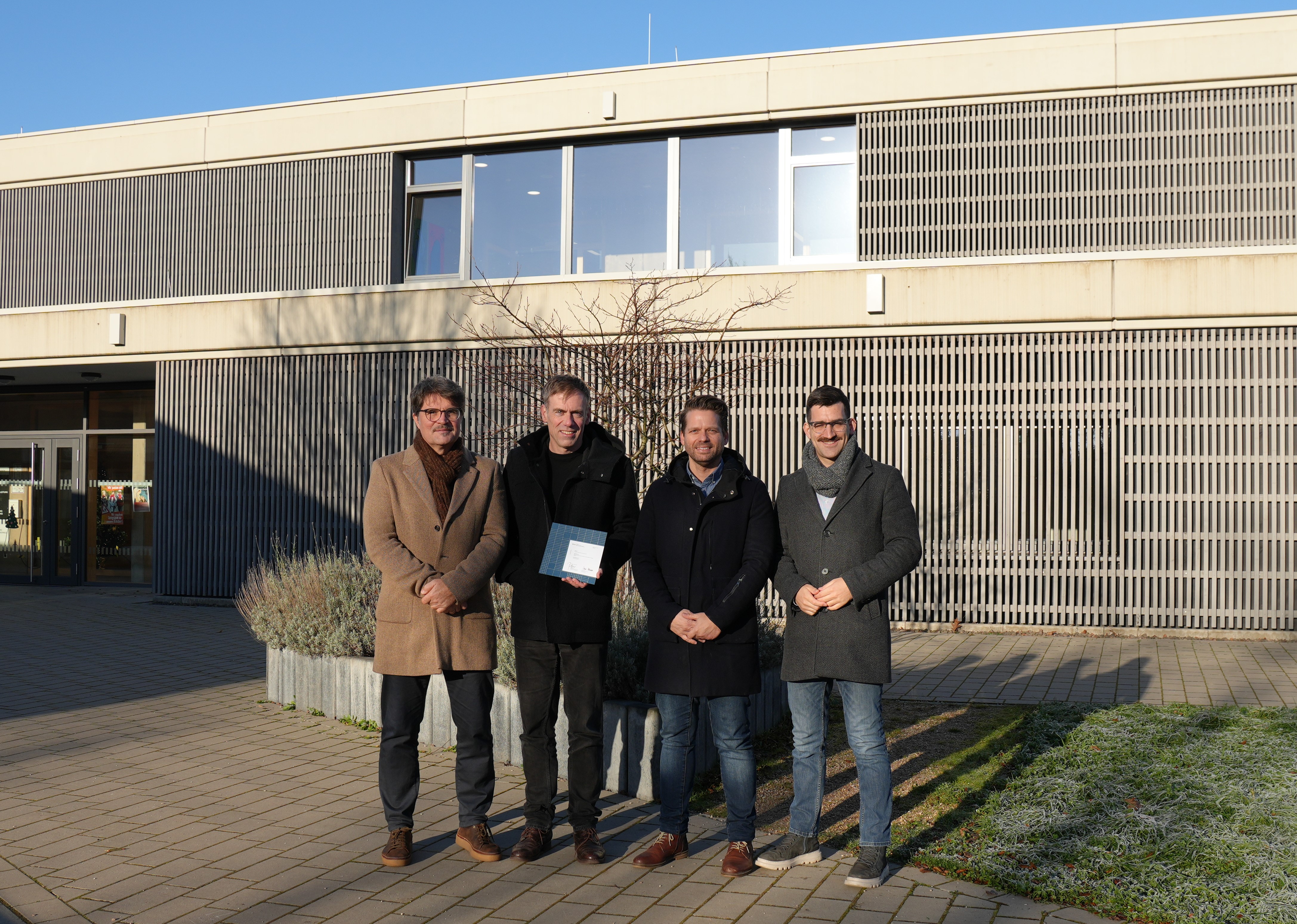 Bürgermeister Carsten Quirin und Amtsleiter Alexander Guß nahmen für die Kreisstadt Saarlouis als Bauherrin im Beisein des zuständigen Architekten Max Munkel von ABMP Architektur aus Freiburg die Anerkennung entgegen. „Wir freuen uns sehr, dass das innovative Raumkonzept von der Schulgemeinschaft so gut angenommen und der Mut der Bauherrschaft nun mit einer Anerkennung beim BDA Architekturpreis gewürdigt wird“, so der Architekt Max Munkel.