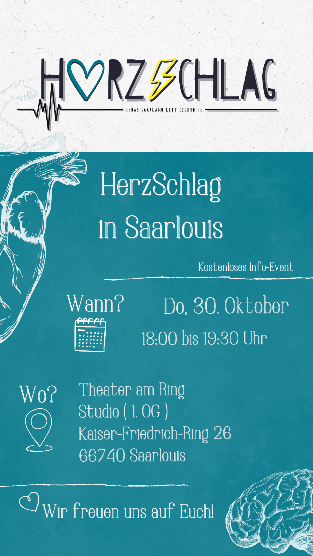 Herzinfarkt und Schlaganfall gehören zu den häufigsten medizinischen Notfällen und gleichzeitig lassen sich viele Risikofaktoren durch Wissen und Prävention positiv beeinflussen. Deshalb lädt die Stadt Saarlouis und das Netzwerk »Das Saarland lebt gesund!« am 30. Oktober zu einem kostenlosen Informationsabend nach Saarlouis ein.