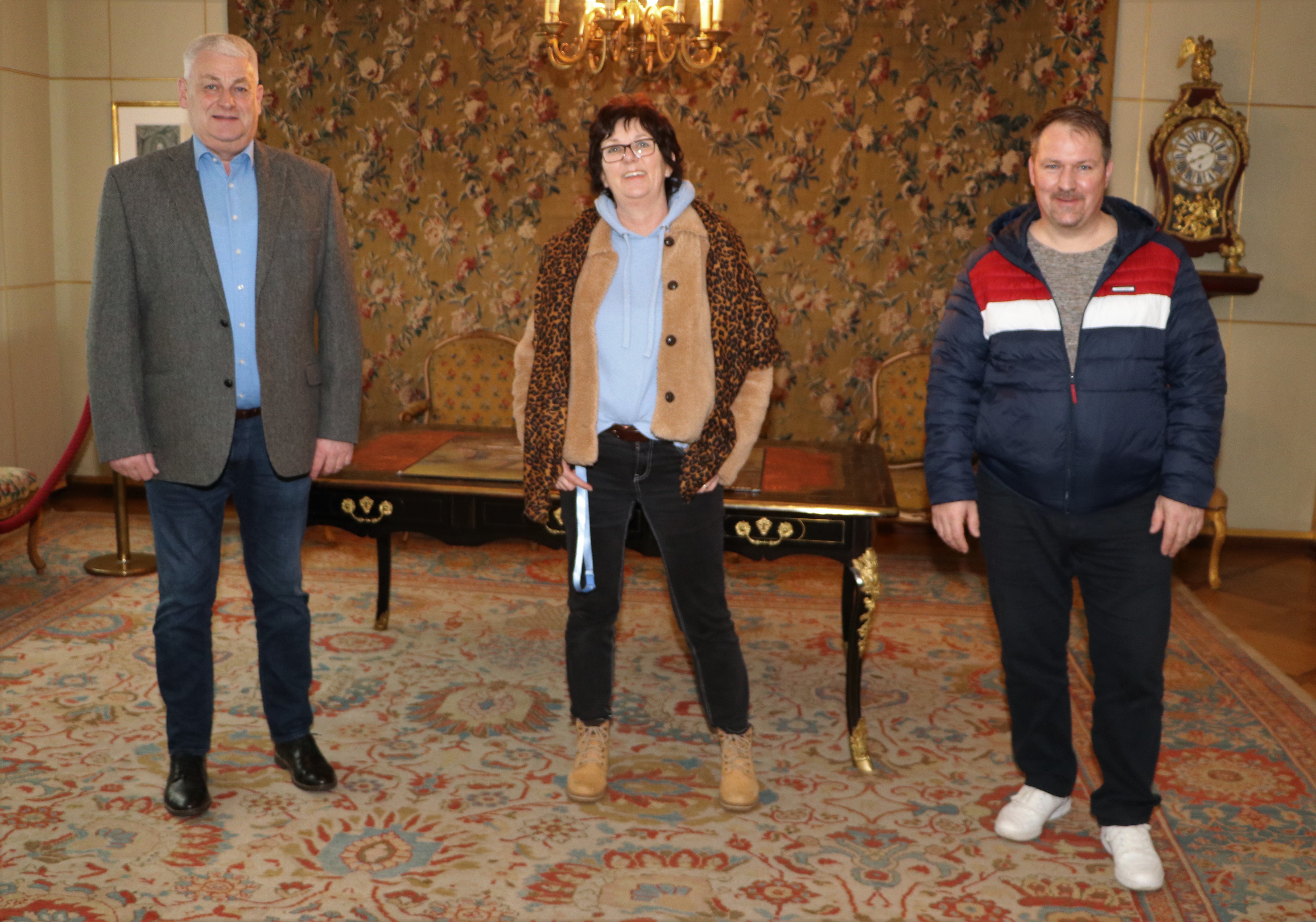 v.l.n.r. : OB Peter Demmer , Monika Gessinger und Markus Farawell beim Besuch im Rathaus. (Foto: Sophia Bonnaire)