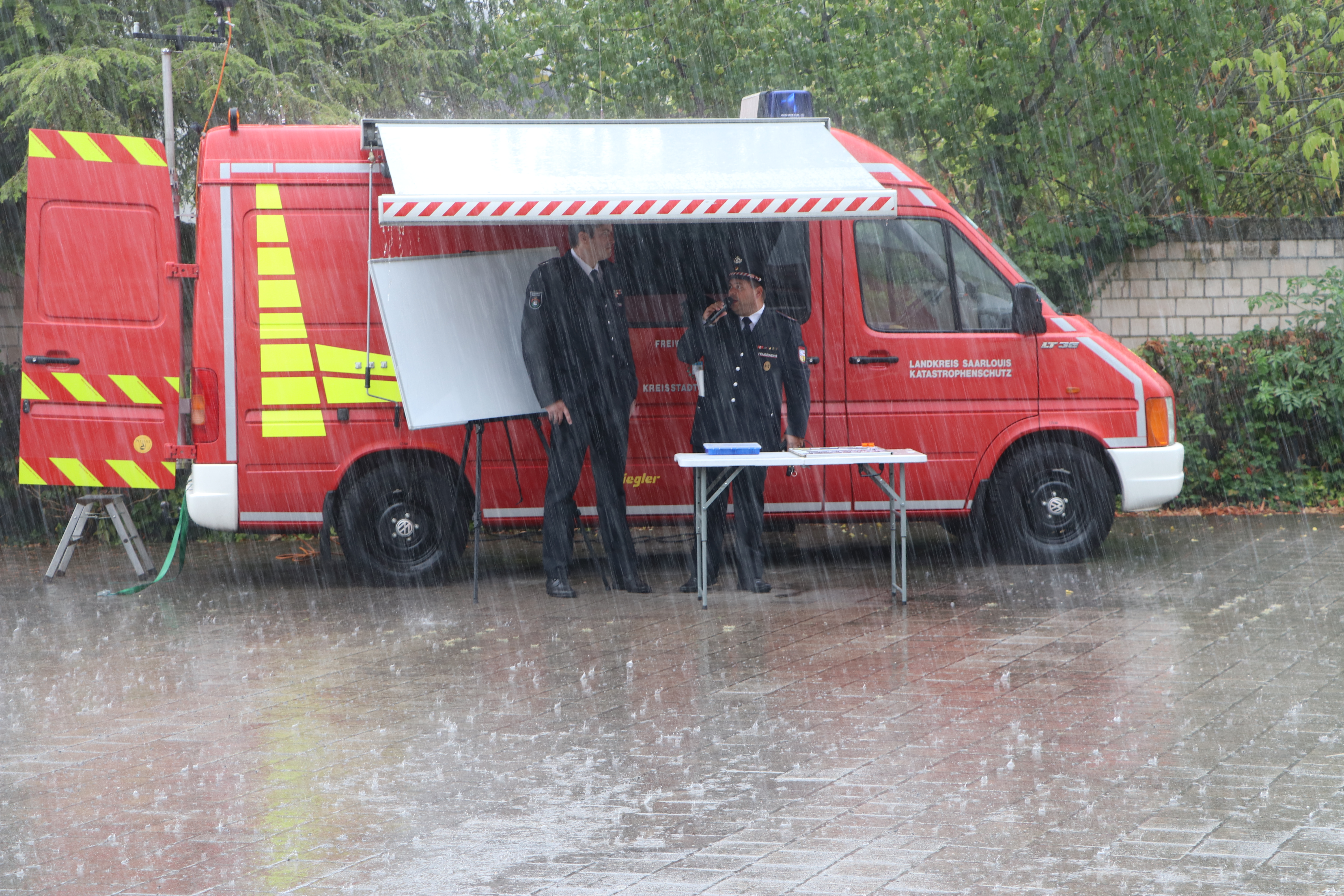 Die Übung der Feuerwehr fand Anfang September im strömenden Regen statt.