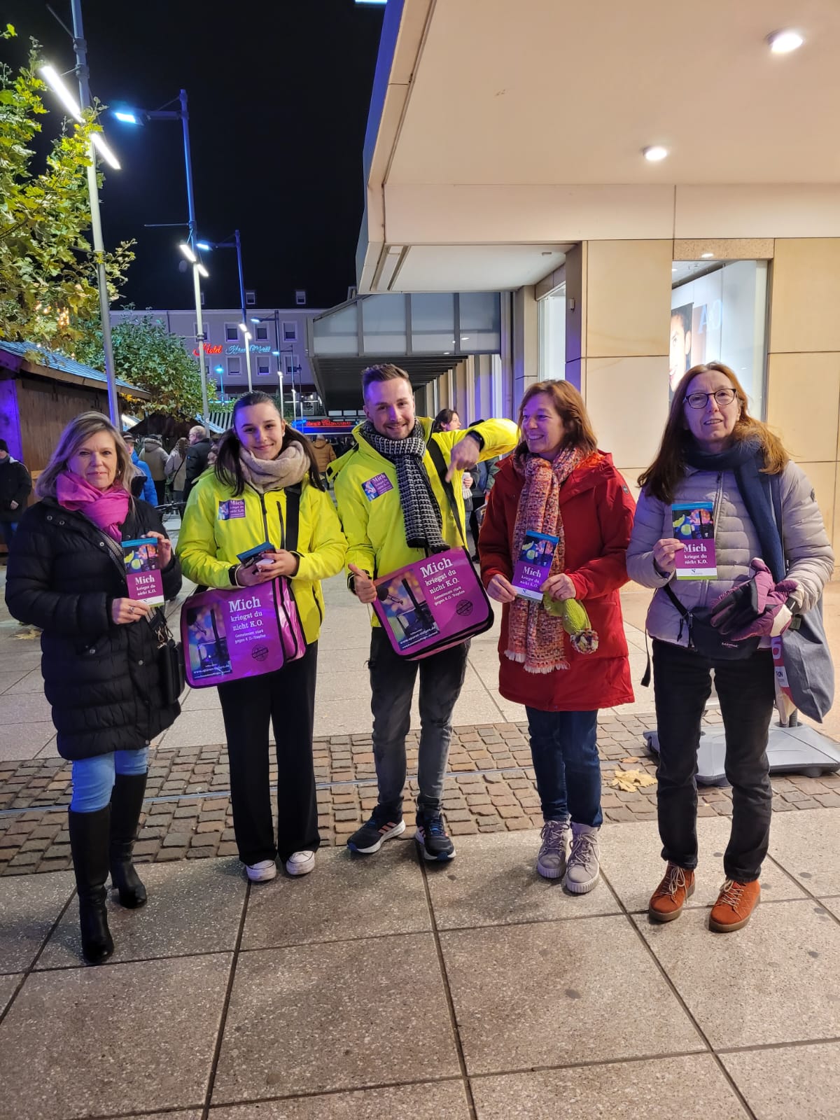 Anlässlich des Internationalen Tages gegen Gewalt an Frauen startete am 25. November 2022 die breit angelegte Öffentlichkeitskampagne „Mich kriegst du nicht K.O.! – Gemeinsam stark gegen K.O.-Tropfen!“ der Landesarbeitsgemeinschaft kommunale Frauenbeauftragte gemeinsam mit dem Ministerium für Arbeit, Soziales, Frauen und Gesundheit und weiteren Projektpartnerinnen.