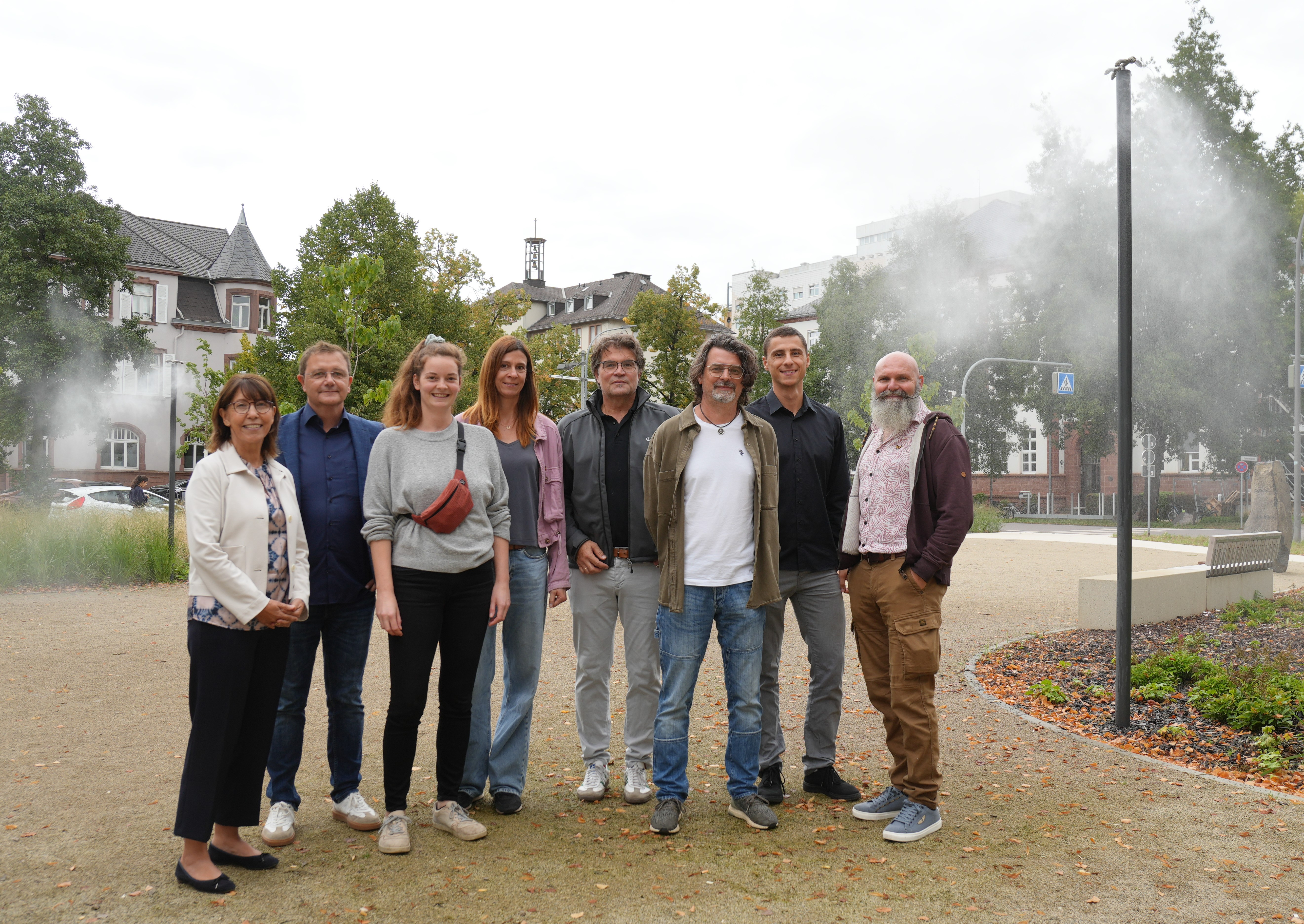 Zum Projektstart kamen Vertreter der Stadtverwaltung und des Planungsbüros im Rathaus zusammen. Im Anschluss wurde der neugestaltete Gutenbergplatz sowie der Kleine und Große Markt besichtigt – Orte, an denen bereits konkrete Maßnahmen zur Klimaanpassung sichtbar sind. Dazu zählen etwa die Vernebelungsanlage auf dem Gutenbergplatz zur Hitzeminderung, mobile Pflanzkübel mit Sitzfunktion oder neue, wasserdurchlässige Sitzbereiche unter Platanen am Kleinen Markt.