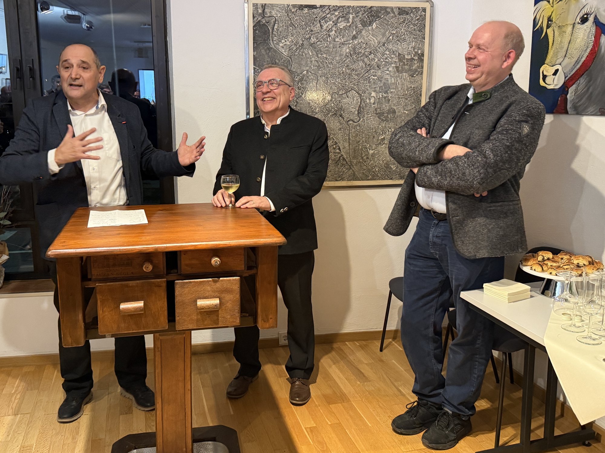 Denn das neue „LisDorfHaus“ war von Anfang an ein erfolgreiches Gemeinschaftsprojekt: „Wir hatten durchweg 20 Helfer, zehn, zwölf waren immer da“, erklärte Georg Jungmann am feierlichen Eröffnungsabend im großen Gemeinschaftsraum im prall gefüllten Erdgeschoss des Hauses. Große Unterstützung gab es auch von den Sponsoren, vom Vermieter und von der Stadtverwaltung, die die Anmietung des Hauses schnell und unbürokratisch ermöglichte: „Egal wem wir erklärt haben, was wir brauchen, alle haben uns sofort und ohne Probleme geholfen.“ Anfangs sei das Haus ein Rohdiamant gewesen, erklärte Herbert Germann. „In nur drei Monaten haben wir es in unzähligen Arbeitsstunden in Eigenregie renoviert – ein gemeinschaftlicher Kraftakt!“ Germann ist der Vorsitzende des Vereins „Lisdorf… alles im grünen Bereich e.V.“, dem Trägerverein des neuen Dorfgemeinschaftshauses. Anlässlich der offiziellen Eröffnung erinnerte daran, wie es überhaupt zum „LisDorfHaus“ gekommen ist: „Bei den Bürgerworkshops zum Dorfentwicklungskonzept links der Saar ist schnell klar geworden was fehlt: Ein Treffpunkt für die Vereine, mitten im Ort.“ Als das Gasthaus Schulden vor einigen Jahren schloss, wichen die Lisdorfer Vereine notdürftig auf Garagen und Kellerräume aus, Veranstaltungen mussten abgesagt werden. Mit dem Haus in der Provinzialstraße 78 wurde dann der optimale Ort gefunden: 1910 erbaut war hier zunächst ein Kolonialwarenladen, später eine Gaststätte, die Bezeichnung „Zockerneckels Greet“ erinnert an die Vergangenheit des Hauses.