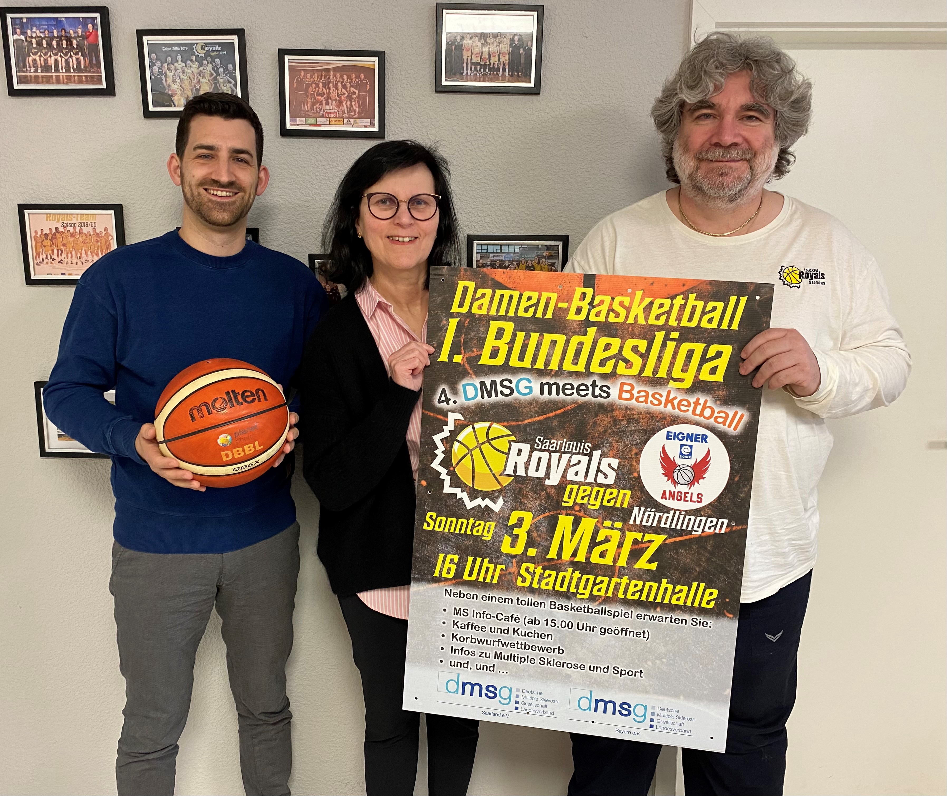 „Es gibt immer Lösungen“, sagt Thomas Mathieu und lacht. In der Geschäftsstelle der Saarlouis Royals trifft er sich mit Bürgermeister Carsten Quirin und der Geschäftsführerin der Deutschen Multiple Sklerose Gesellschaft (DMSG), Birgit Dewes, um auf ein besonderes Event am Rande des nächsten Spieltages hinzuweisen: „DMSG meets Basketball“ am Sonntag, 3. März beim Spiel der Saarlouis Royals gegen die Eigner Angels Nördlingen.