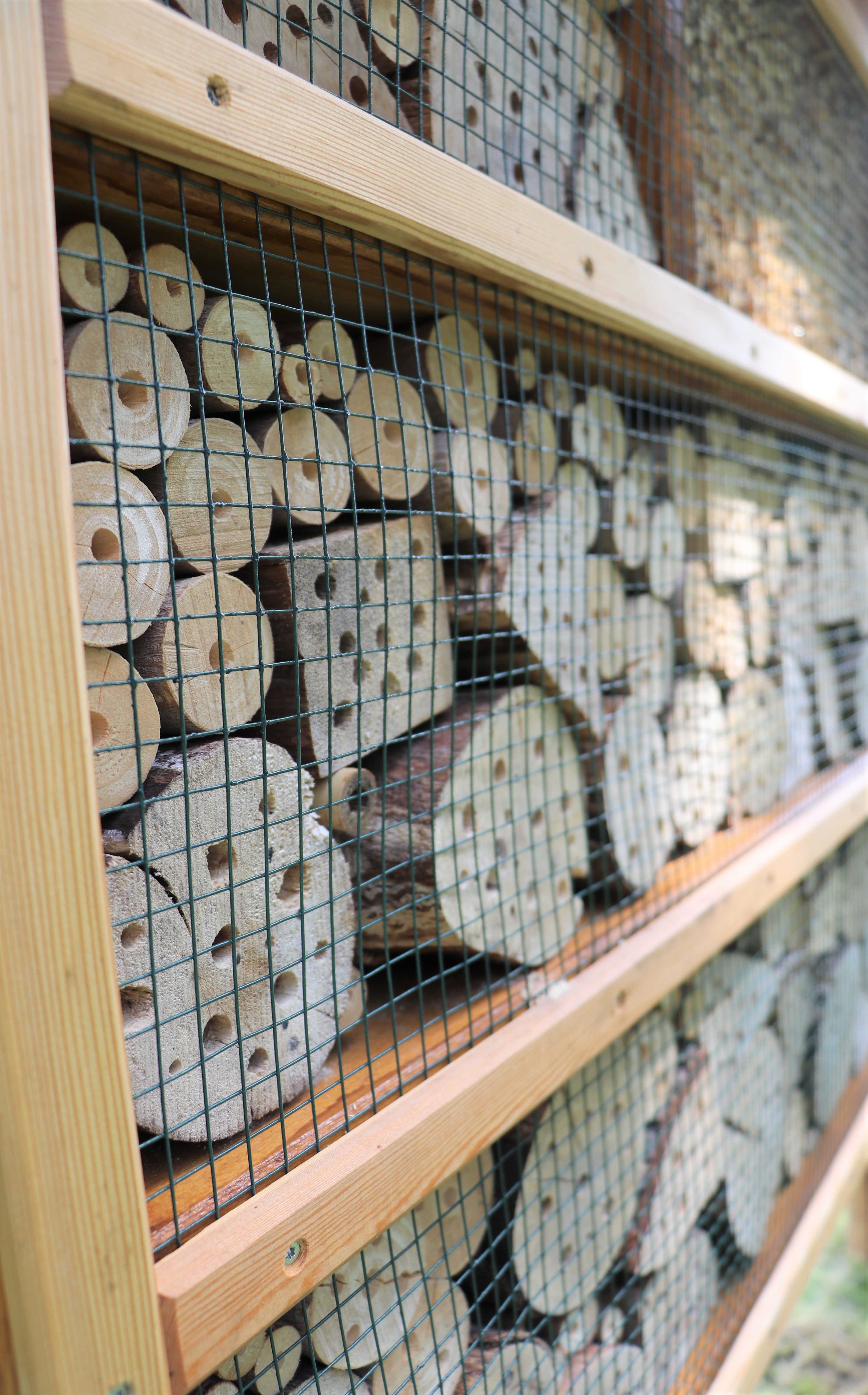 Viele Wildbienenarten sind aufgrund von Lebensraumverlust und Pestizideinsatz bedroht. Sogenannte Bienen- oder Insektenhotels helfen, diese Lebensräume zu ersetzen oder zu ergänzen und bieten sichere Orte zum Nisten und Überwintern. „Durch die Bereitstellung dieser Nistmöglichkeiten unterstützt man die Artenvielfalt und fördert die Population dieser wichtigen Insekten“, hebt Dr. Andreas Ney vom Amt für Stadtplanung, Hochbau, Denkmalpflege und Umwelt beim Termin vor Ort hervor.