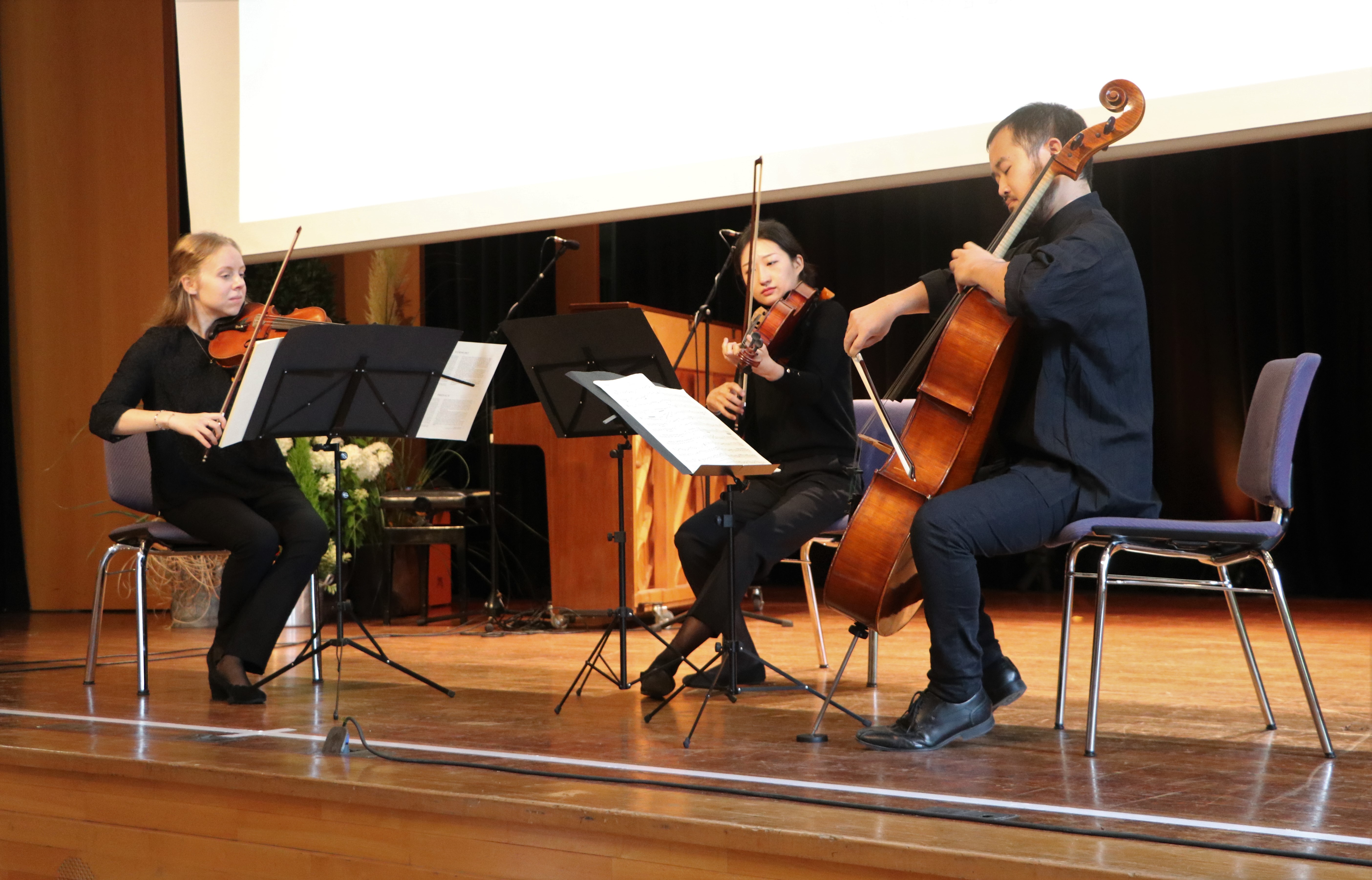 Das Programm an diesem herbstlichen Vormittag wurde gestaltet vom Trio rund um die Violistin Lisa Saterdag, diese wurden zum Ende hin unterstützt vom Chor „United Voices“, die stimmgewaltig einige seiner Stücke zum Besten gaben.