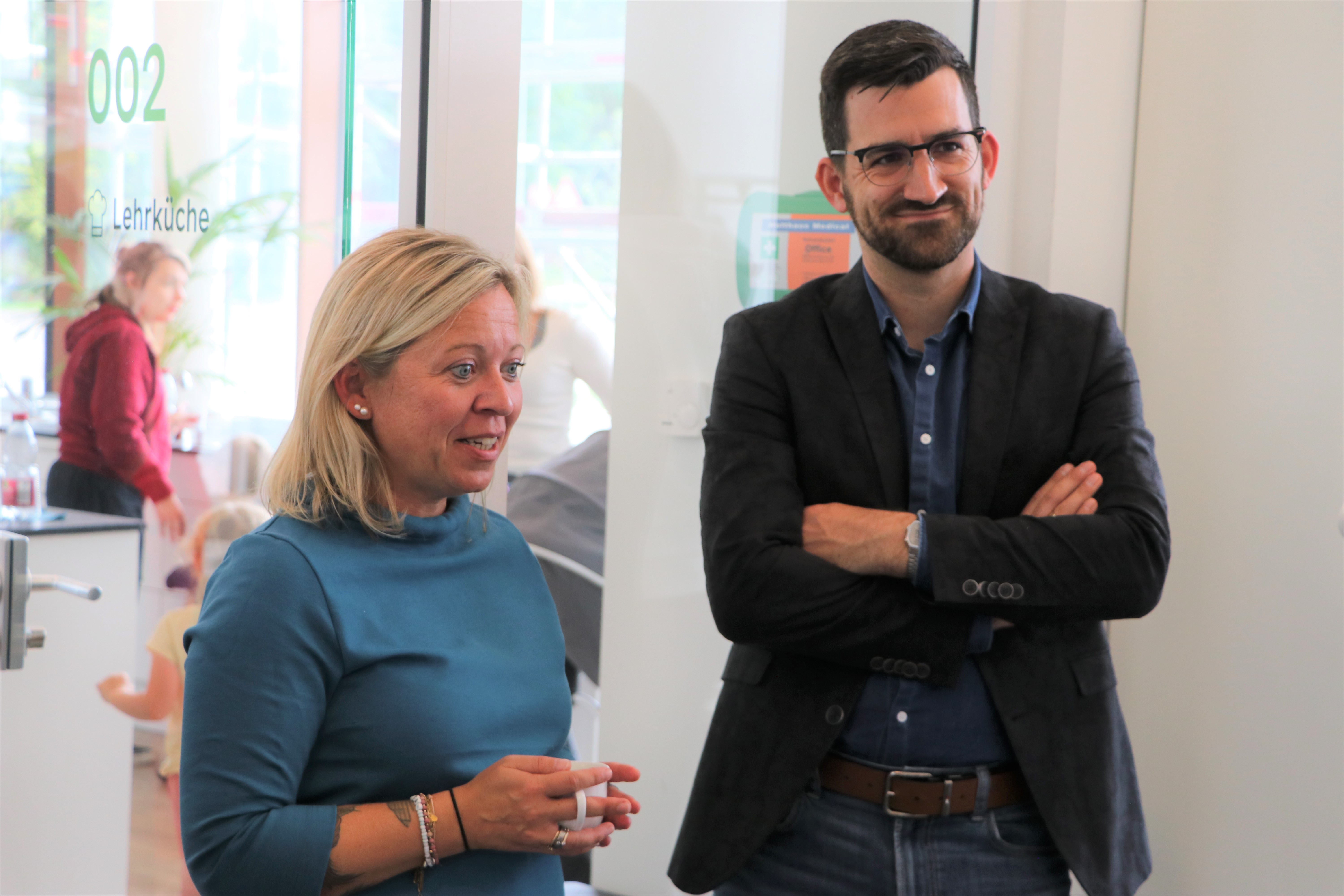 Im Rahmen des Termins stellten Vertreterinnen und Vertreter der AOK verschiedene Projekte aus den Bereichen Kinder- und Schulgesundheit vor. Auch eine Führung durch die neuen Räumlichkeiten gehörte zum Programm.