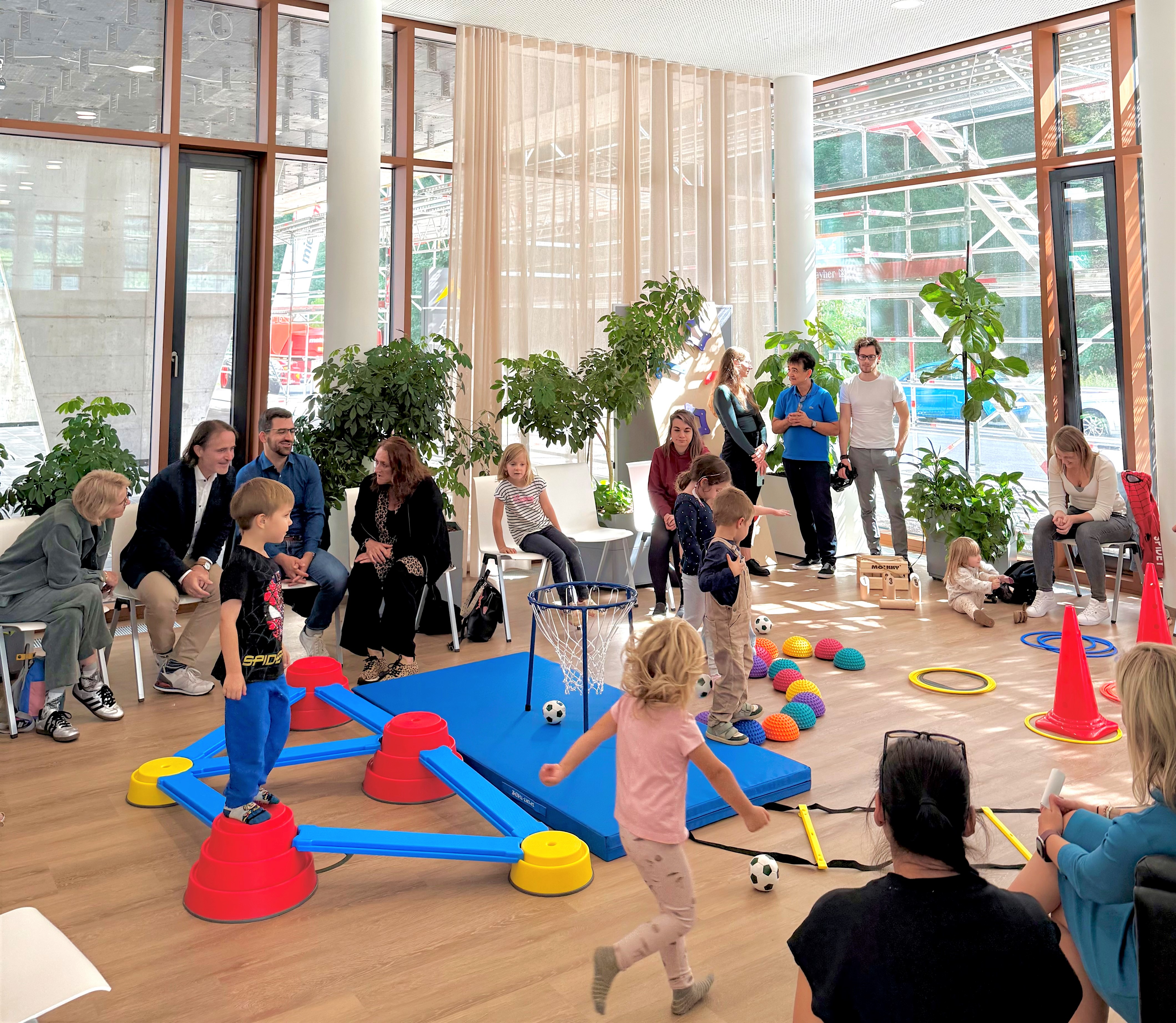 In den Räumlichkeiten der AOK in Saarbrücken auf dem Schanzenberg fand die symbolische Übergabe von Bewegungsmaterialien für Kitas im Rahmen des Netzwerkprojekts „Bewegungsbaustelle” statt. In diesem Jahr profitieren drei Kindertageseinrichtungen im Saarland von dem Projekt, darunter die Kita Neuforweiler aus Saarlouis. Neben Bürgermeister Carsten Quirin, Amtsleiter Thomas Klein, der pädagogischen Gesamtleitung Katrin Baier sowie der Leiterin der Kita Neuforweiler Corinna Bast nahmen Vertreterinnen des Elternbeirats der Kita Neuforweiler und deren Kinder teil. Sie begleiteten die Übergabe der Bewegungsmaterialien gemeinsam mit Bildungsstaatssekretärin Jessica Heide und weiteren Personen.