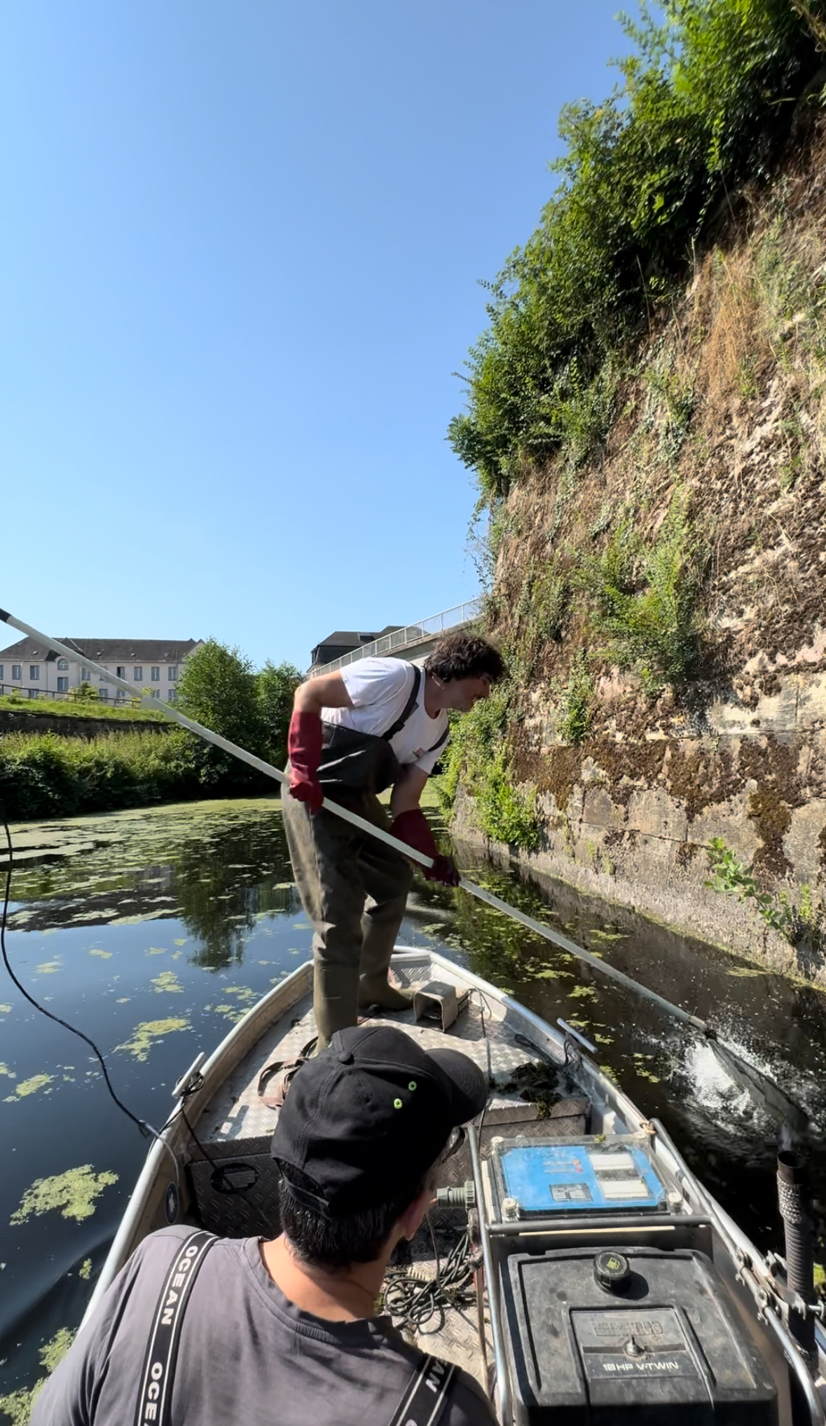 Dr. Sebastian Hoffmann, Biologe und Experte für Gewässer und Fischbestände, entnimmt seit Monaten regelmäßig Gewässerproben, die unauffällig sind. Um genaue Aussagen über den ökologischen Zustand des Gewässers treffen zu können, sind ganzjährige Messungen und Untersuchungen notwendig. Am Donnerstag, 26. Juli, fand ein erster Termin zum sogenannten Elektrofischen statt. Bei dieser schonenden Methode wird mittels Gleichstrom um ein Boot ein elektrisches Feld aufgebaut. Die Fische werden an der Anode, die sich am Kescher befindet, angezogen und dort durch den Strom kurzfristig betäubt. So erhält Dr. Sebastian Hoffmann ein gutes Bild über den Fischbestand und kann daraus auch Aussagen über den ökologischen Zustand des Fischbestandes und daher auch auf die Gewässergüte ableiten.