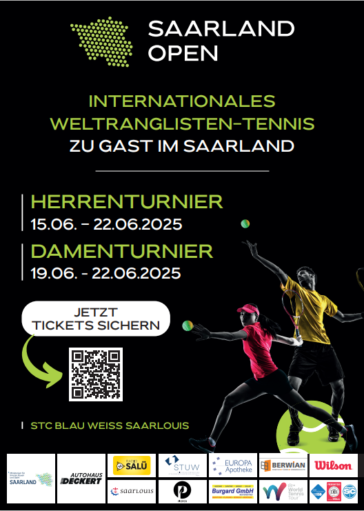 Der Saarlouiser Tennisclub Blau-Weiss e.V. richtet auch in diesem Jahr wieder ein ganz besonderes Highlight im saarländischen Sportkalender aus: Zum neunten Mal finden vom 15. bis 22. Juni 2025 die Saarland Open statt – das einzige Weltranglisten-Herren-Tennisturnier im Saarland.