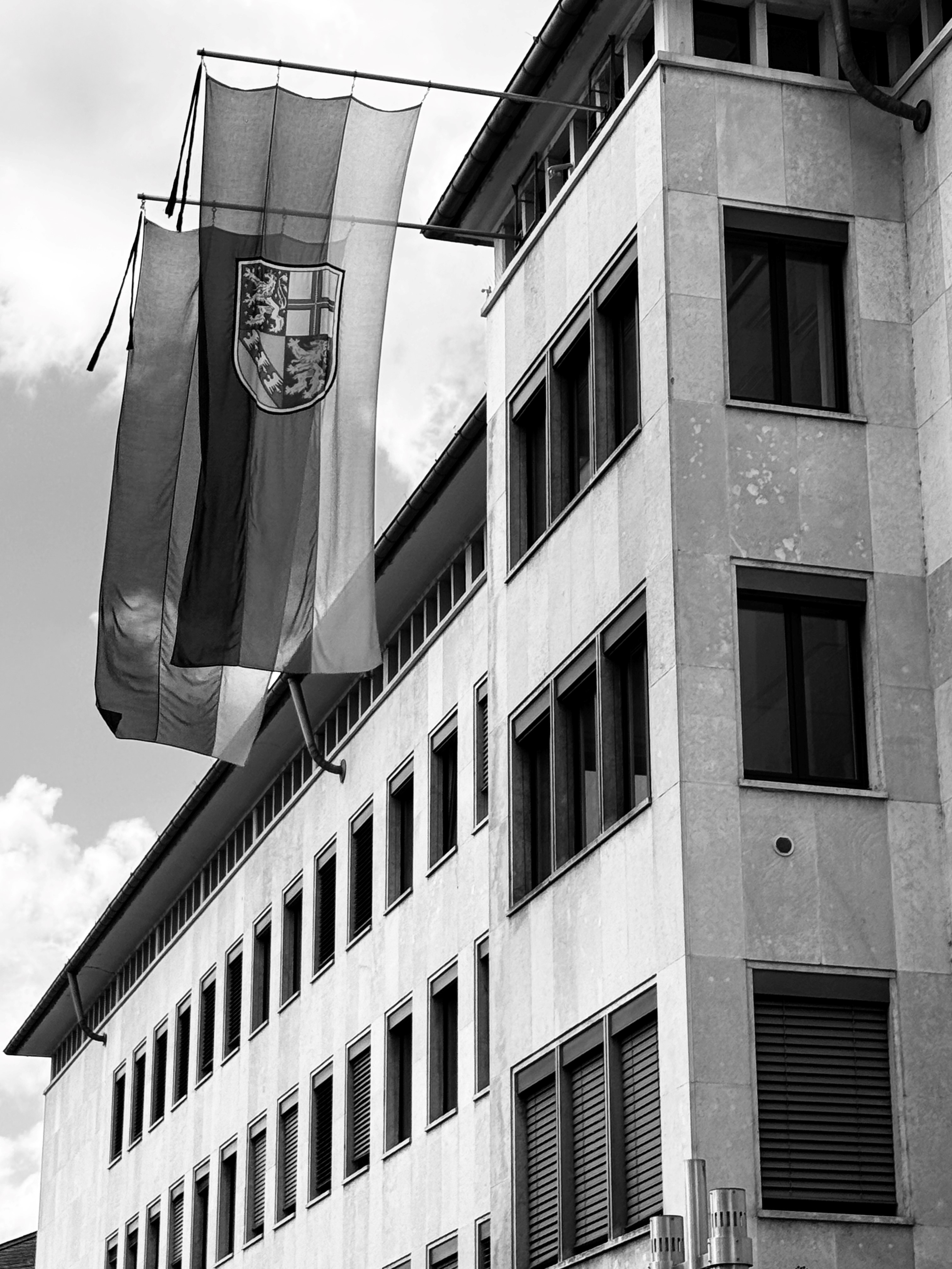 Trauerbeflaggung am Saarlouiser Rathaus in Gedenken an Polizeioberkommissar Simon B., der bei der Verrichtung seines Dienstes tödlich verletzt wurde.