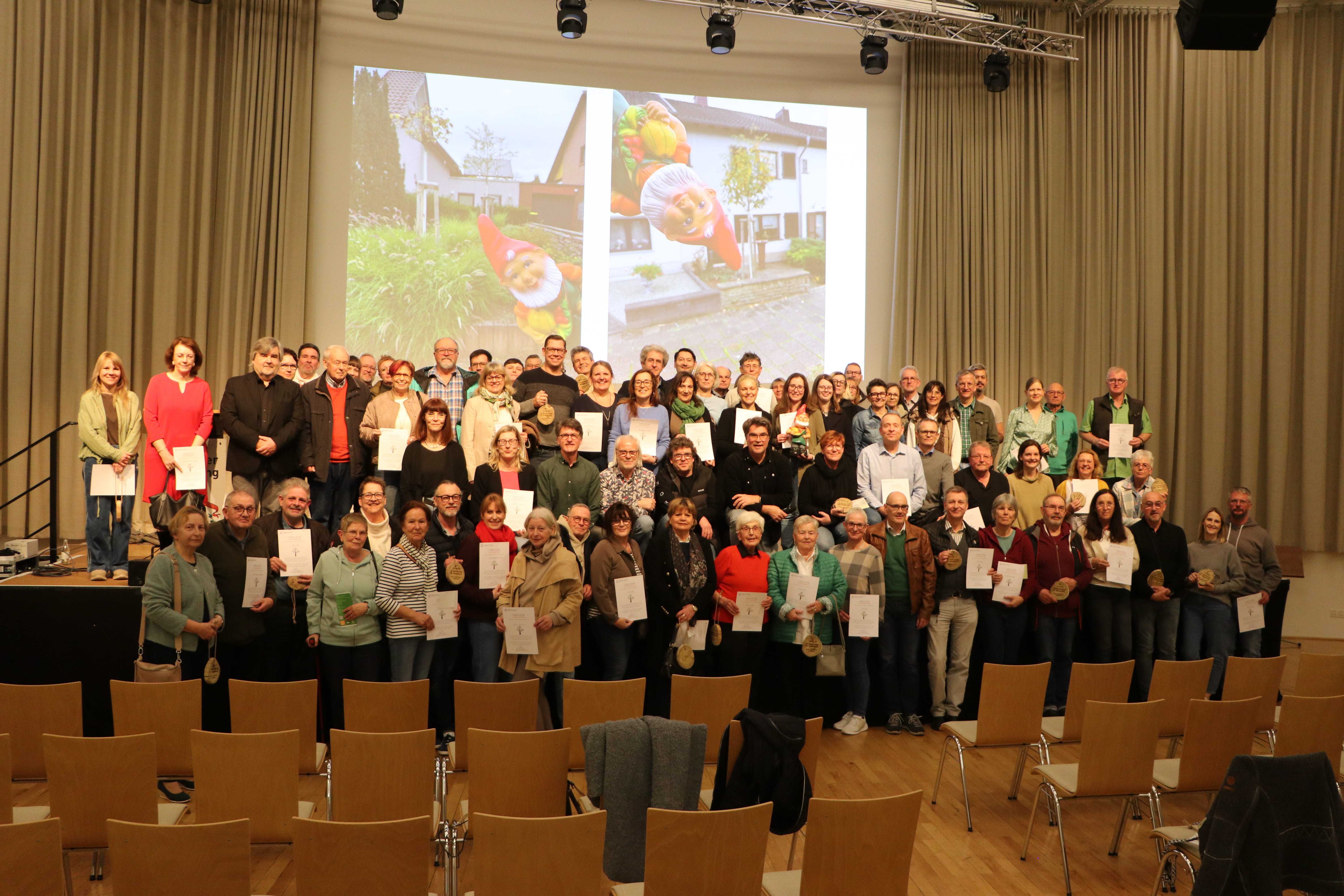 Im Rahmen einer Ehrungsveranstaltung im Theater am Ring würdigte die Europastadt Saarlouis etwa 80 anwesende Hausbaum-Empfängerinnen und -Empfänger für ihre Teilnahme. Die Stadt überreichte Dankesurkunden sowie eigens kreierte Baumplakette aus Saarlouiser Robinienholz. Für besondere Aufmerksamkeit sorgte dabei auch ein humorvoller Botschafter des Projekts: ein Gartenzwerg, der in Anlehnung an den Film „Die fabelhafte Welt der Amélie“ als Maskottchen der Hausbäume fungierte. In einer Bildpräsentation wurde der Zwerg auf „Reisen“ durch das Saarlouiser Stadtgebiet gezeigt – fotografiert an verschiedenen Standorten und Hausbäumen. Die charmante Idee sorgte bei den Anwesenden für viele Schmunzler und unterstrich auf kreative Weise die Verbundenheit der Bürgerinnen und Bürger mit „ihren“ Bäumen. Passend dazu war ein liebevoll ausgewählter Gartenzwerg auch der Hauptgewinn der Tombola des Abends.