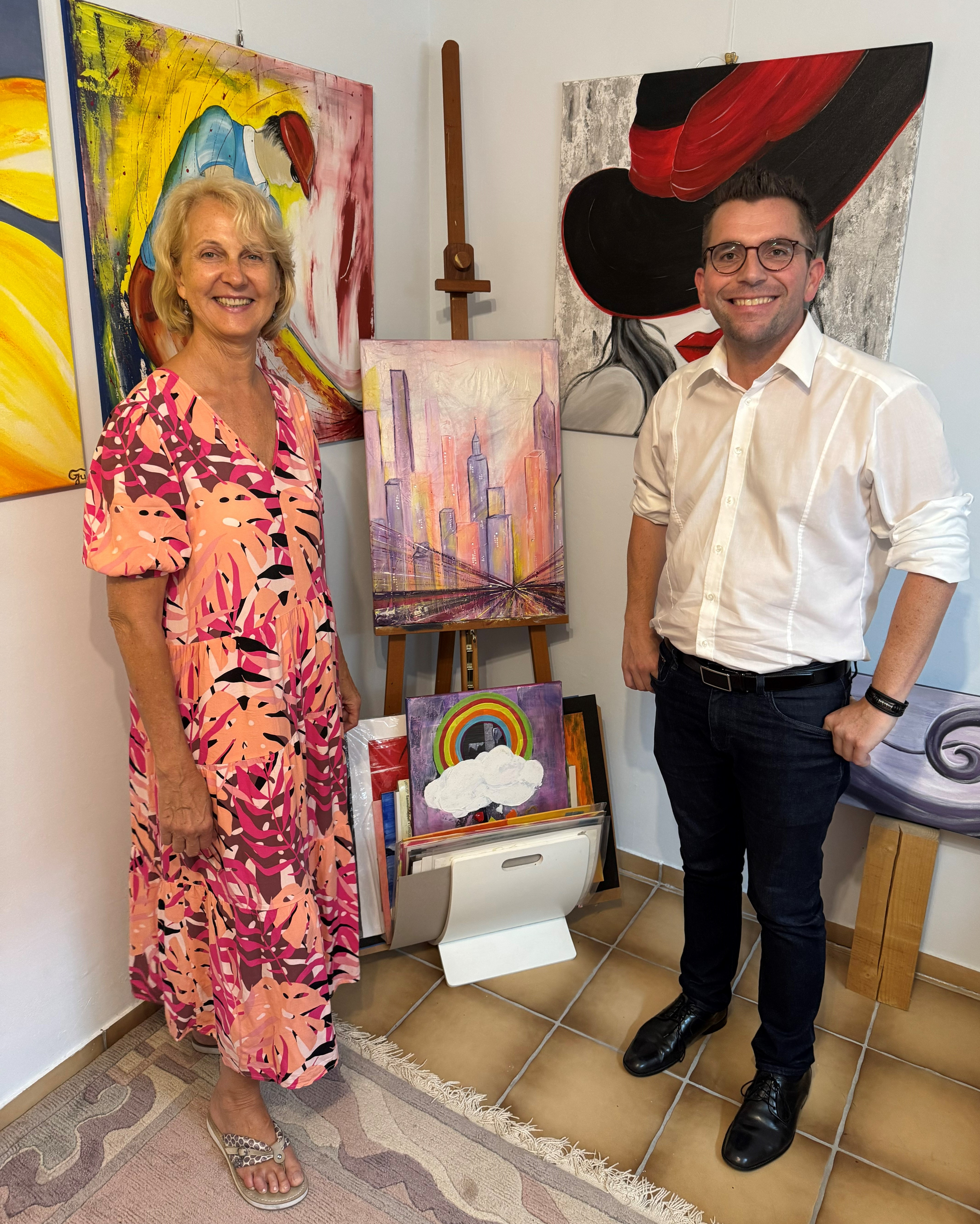 Oberbürgermeister Marc Speicher hat die Saarlouiser Künstlerin Gudrun Jungmann in ihrem Atelier besucht und sich dort persönlich ein Bild von ihrem kreativen Schaffen gemacht. Bei dem Treffen stand nicht nur die Kunst im Mittelpunkt, sondern auch das gesellschaftliche Engagement der Künstlerin – insbesondere für Frauen in der Kunstwelt.