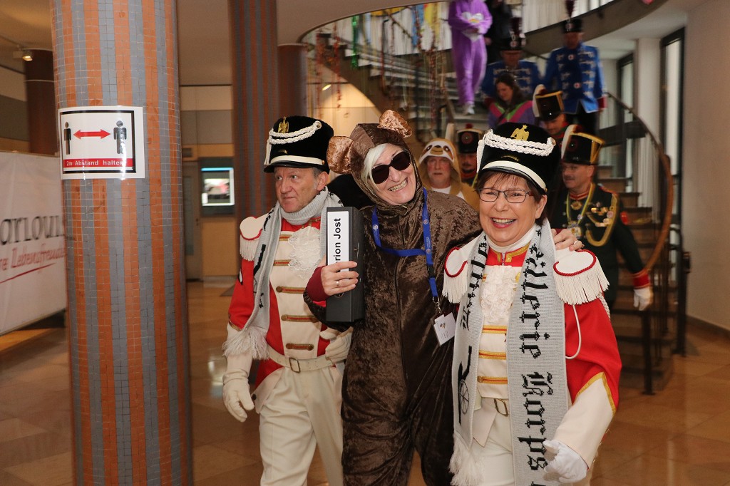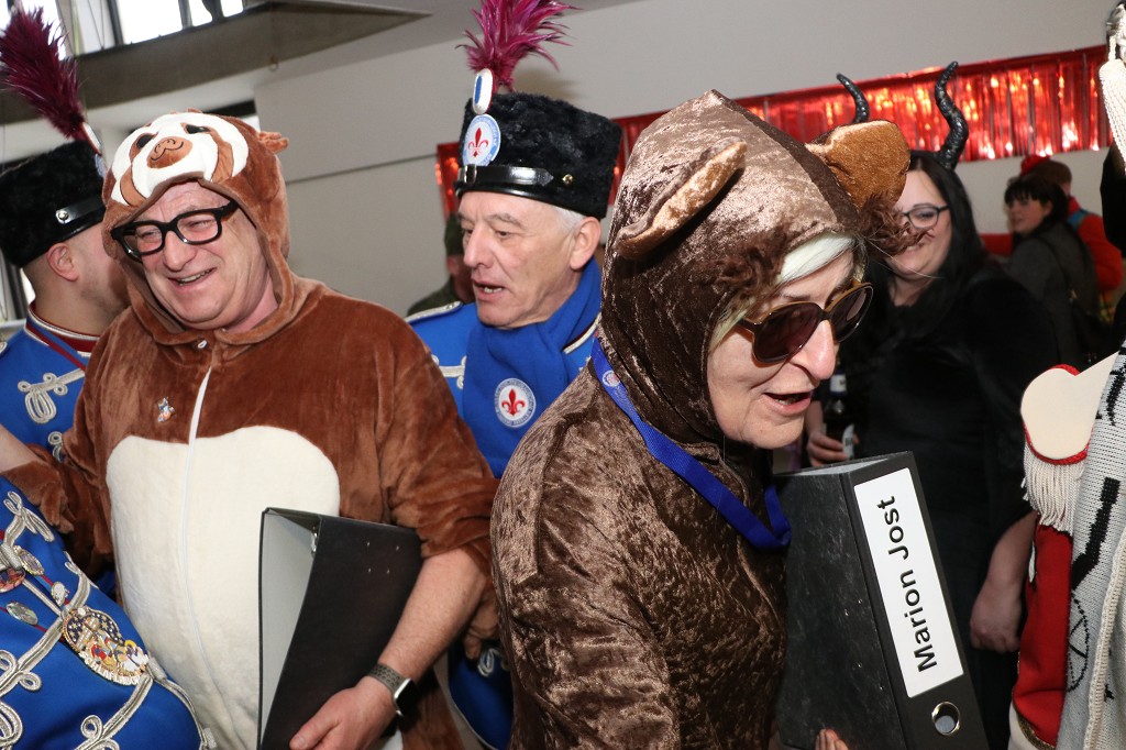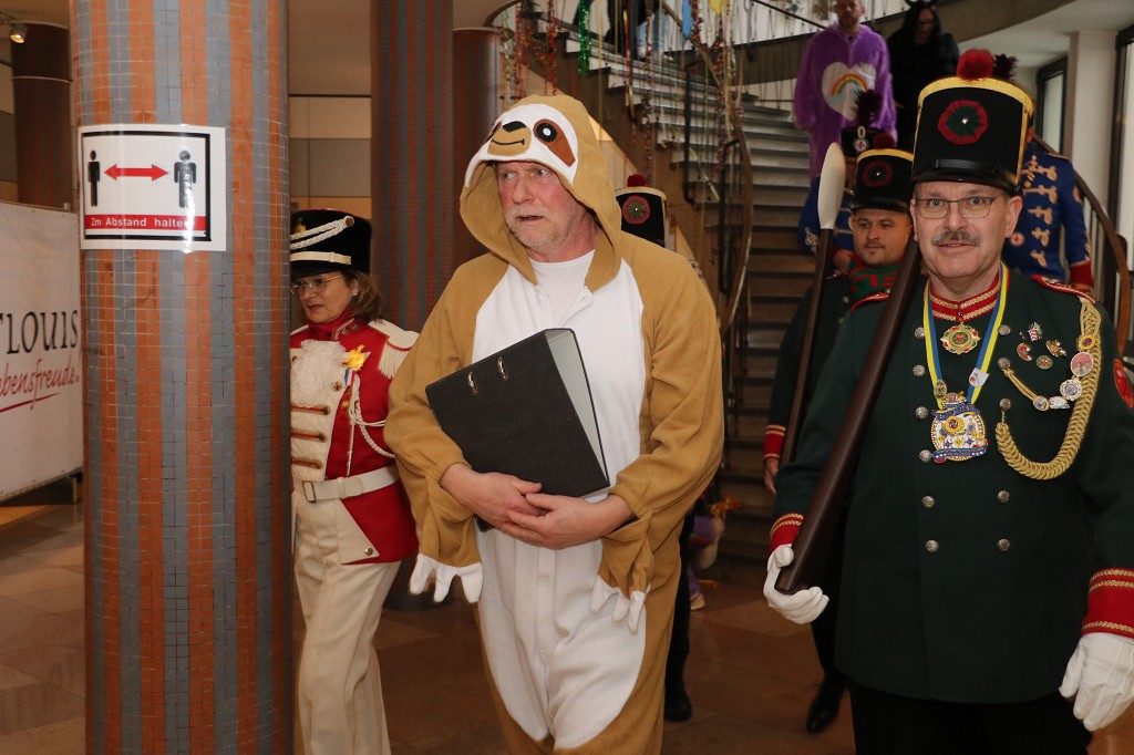 Nach der pandemiebedingten Verschnaufpause für die Verwaltungsspitze haben die Saarlouiser Karnevalsvereine in diesem Jahr kein Auge zugedrückt und OB Peter Demmer, Bürgermeisterin Marion Jost sowie Beigeordneten Günter Melchior erstmals vor das Saarlouiser Narrengericht gestellt. Obwohl die drei Angeklagten noch den raschen Versuch unternahmen, im Massenansturm der Faasendboozen unerkannt zu entkommen, haben Löffelgarde, Artillerie Korps und Husaren ihre Verkleidung durchschaut und den Fluchtversuch vereitelt.