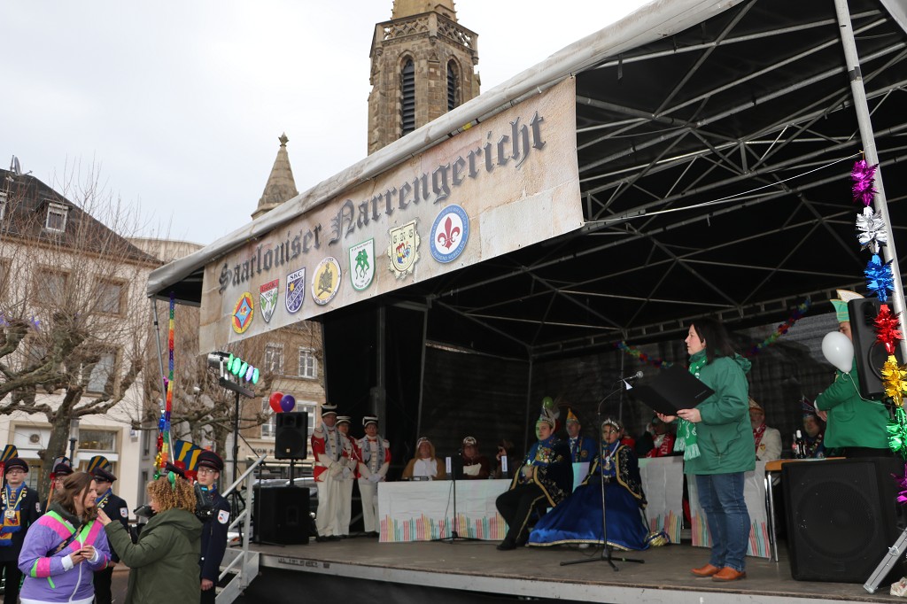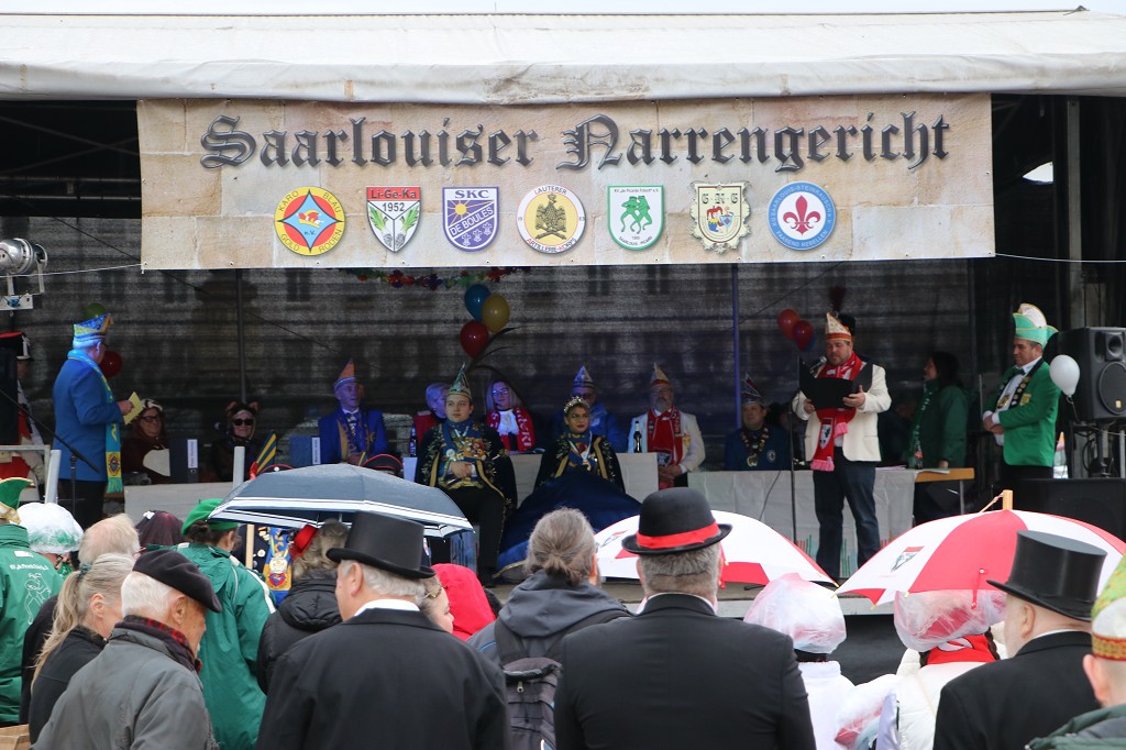 In einem öffentlichen Prozess auf dem Großen Markt wurde gegen die Stadtspitze sodann die Generalanklage der Saarlouiser Narrenrunde erhoben. Doch trotz tapferer Gegenwehr war sie machtlos: Nach seiner Beratung urteilte das hohe Narrengericht: Schuldig!