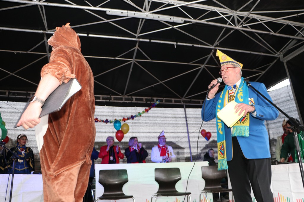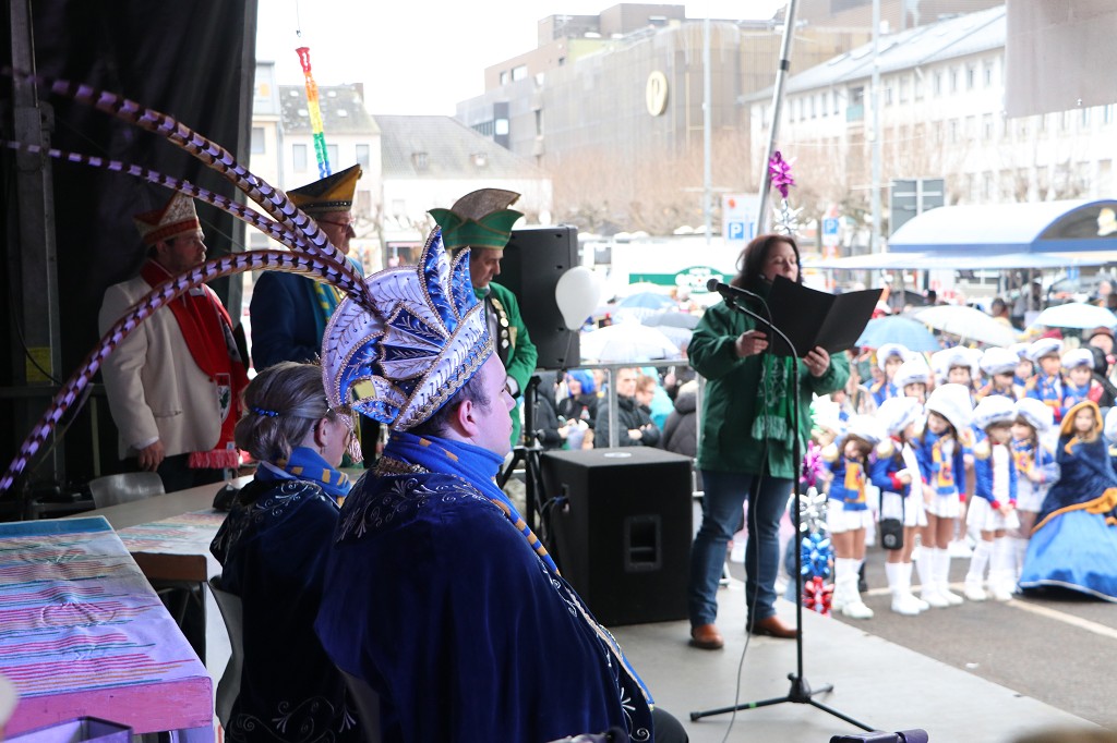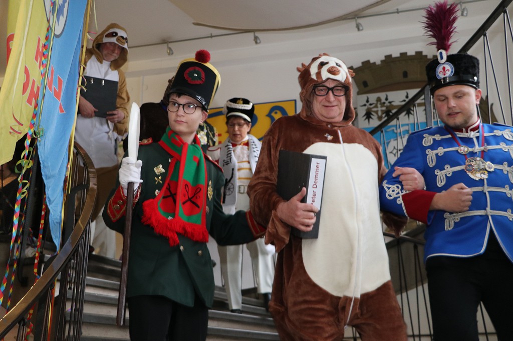 Mit sofortiger Wirkung wurde die Verwaltungsspitze ihrer Ämter enthoben. Statt ihrer inthronisierten die Karnevalisten das Stadtprinzenpaar Prinz Jonas I. und Prinzessin Lea I., denen nun die Geschicke der Stadt für die tollen Tage obliegen: Zepter, Mütze und Ornat statt Akten, Anzug und amtlichem Allerlei.